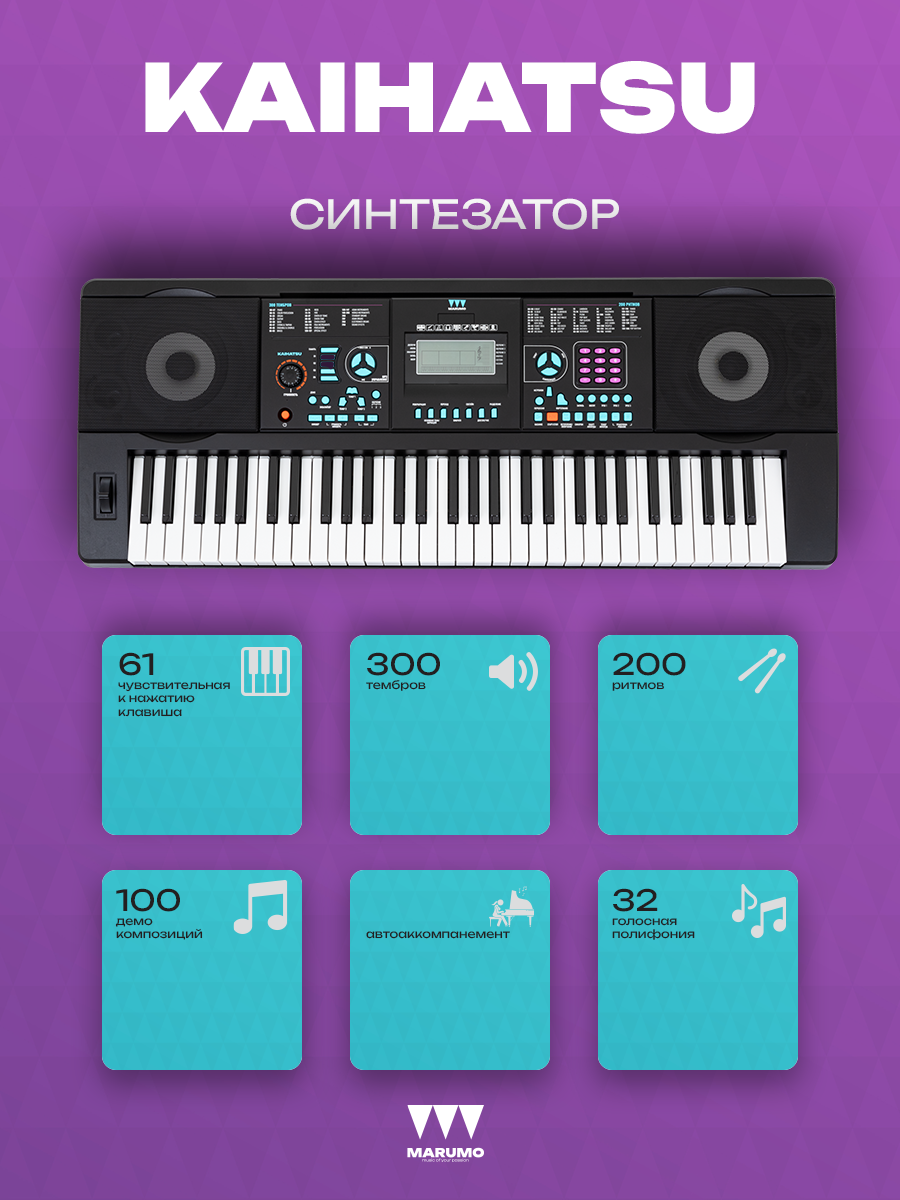 Синтезатор MARUMO KAIHATSU, ЖК-экран, 61 клавиша, полувзвешенный, черный информация: