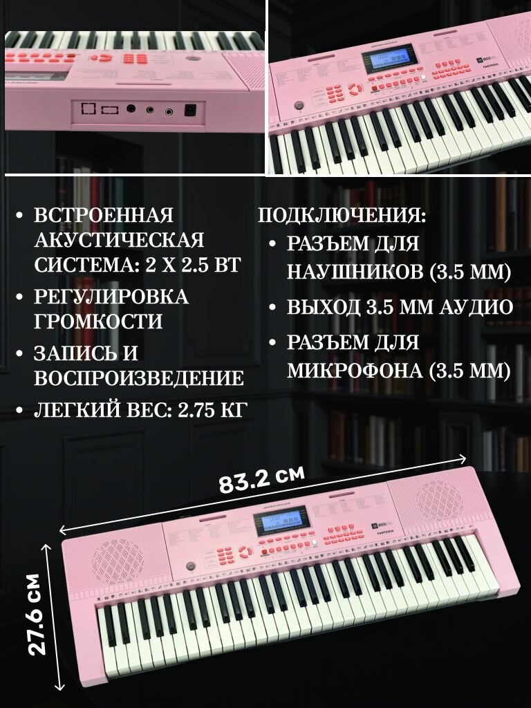 Синтезатор MusicHall Fantasia, 61 клавиша с активной клавиатурой, розовый информация: