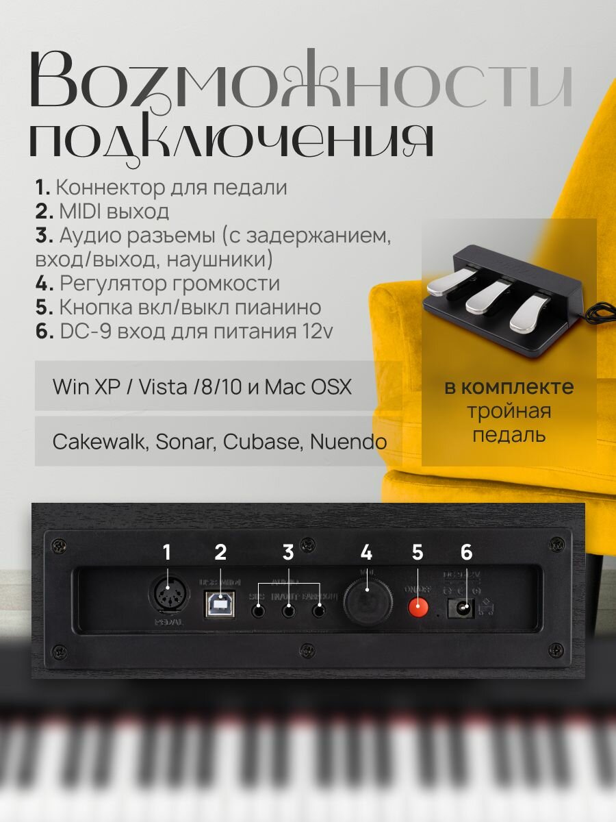 Цифровое пианино с динамической клавиатурой, с тремя педалями информация: