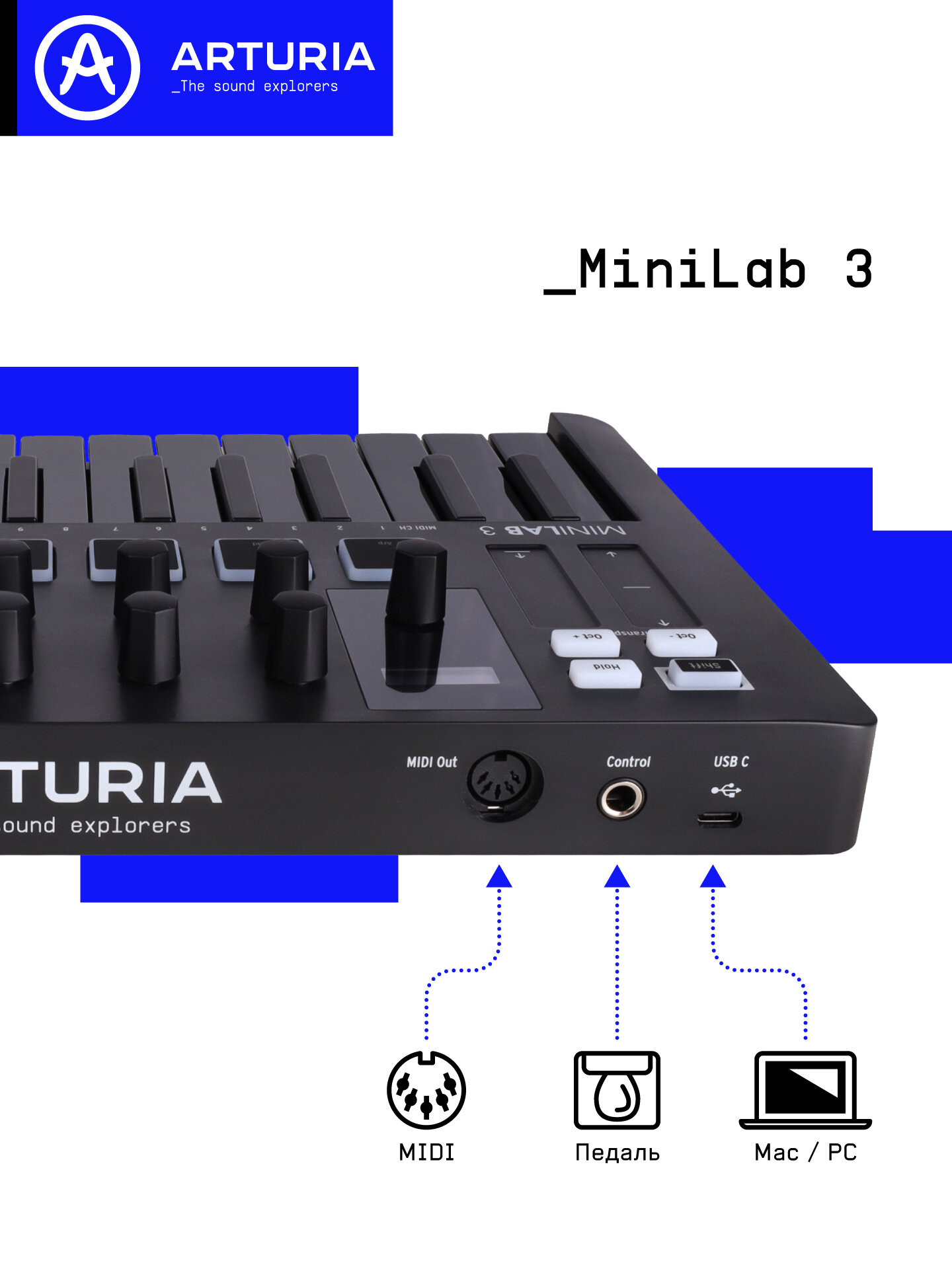 MIDI клавиатура Arturia MiniLAB 3 Deep Black, 25 клавиш, с ПО в комплекте информация: