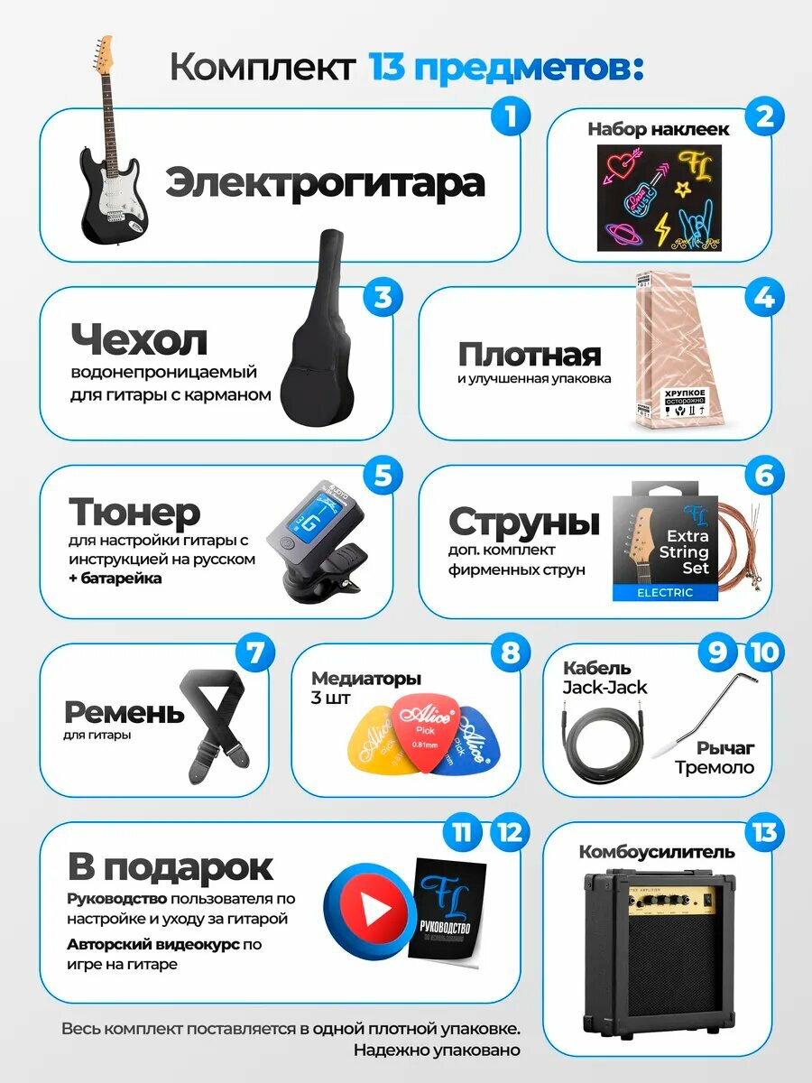10 цен на Электрогитара Stratocaster с комплектом PREMIUM