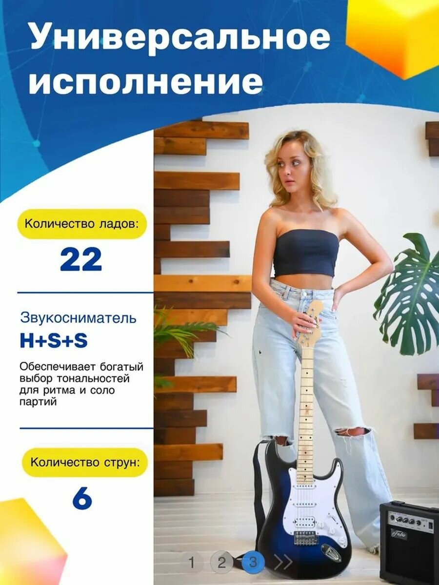 10 цен на Электрогитара Stratocaster Синяя Fabio ST200, BLS H+S+S, 1V+2T (Электрогитара для начинающих)