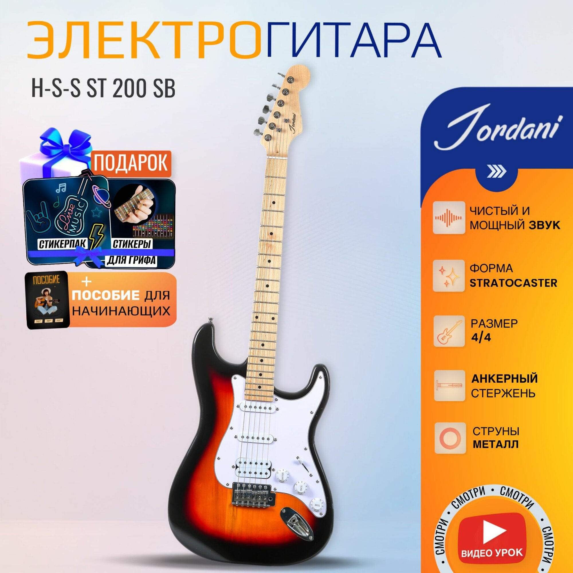 10 цен на Электрогитара Stratocaster Санбёрст Fabio ST200 SB H+S+S, 1V+2T (Электрогитара для начинающих)