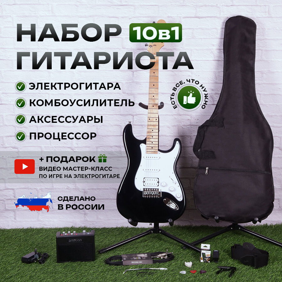 Комплект 10 в 1 Электрогитара с комбоусилителем, Lexguitar Stratocaster Black White 26 500 ₽