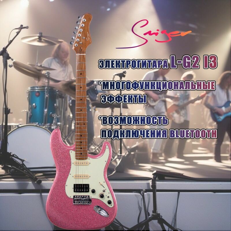 Характиристики этого товара не найдены!Отзывы на Smiger Электрогитара L-G2-i3 розового цвета с встроенным эффектором, 8 тембрами, Bluetooth сопровождение, и мониторинг через наушники.