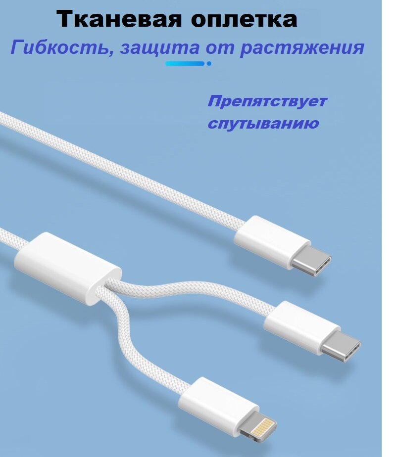 10 цен на Кабель 2 в 1 USB-C - Lightning + USB-С 3А 60 Вт текстиль