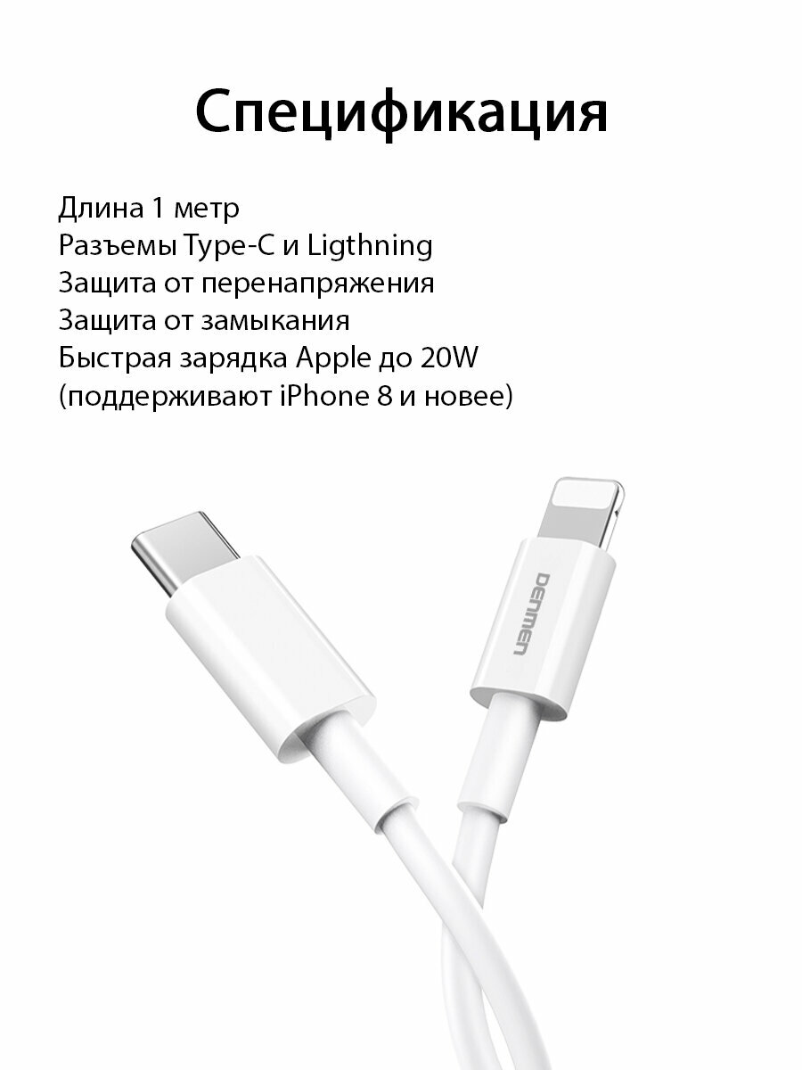 Кабель Denmen D10L, для iPhone, белый, USB Type-C, Lightning информация: