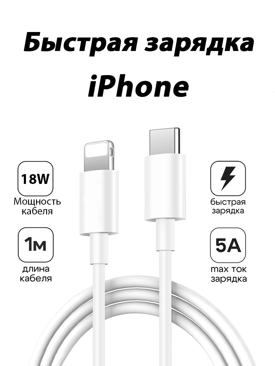 Кабель Type-C/Lightning, для iPhone/iPad/iPod, поддержка MFi, белый, длина 1 м