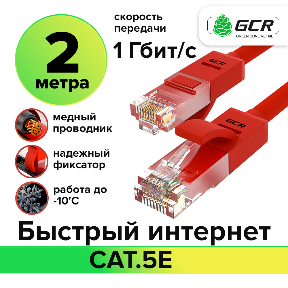 LAN кабель UTP cat.5e 1 Гбит/с RJ45 LAN CCA для интернета контакты 24K GOLD (GCR-LNC500) Красный 2.0м информация: