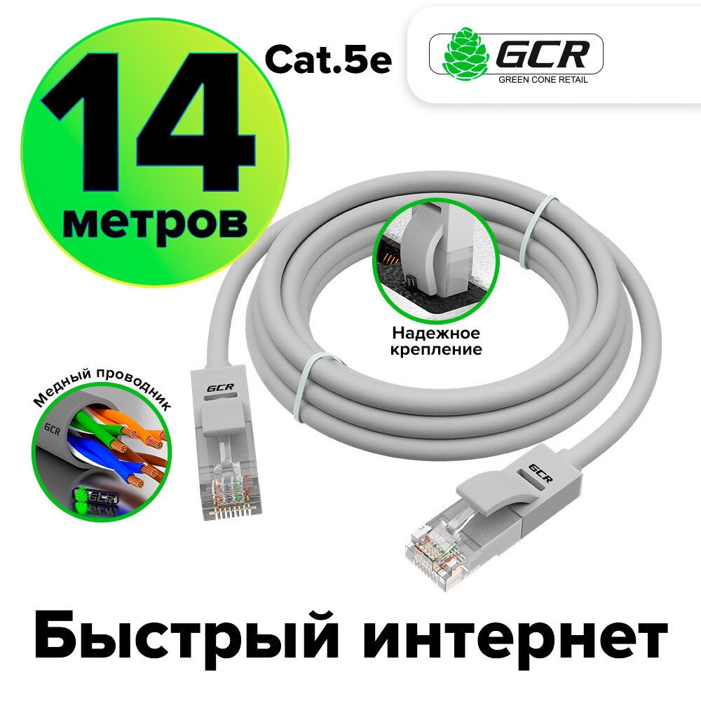 Отзывы на Патч-корд UTP cat.5e 1 Гбит/с RJ45 LAN CCA компьютерный кабель для интернета контакты 24K GOLD (GCR-LNC500) серый 14.0м