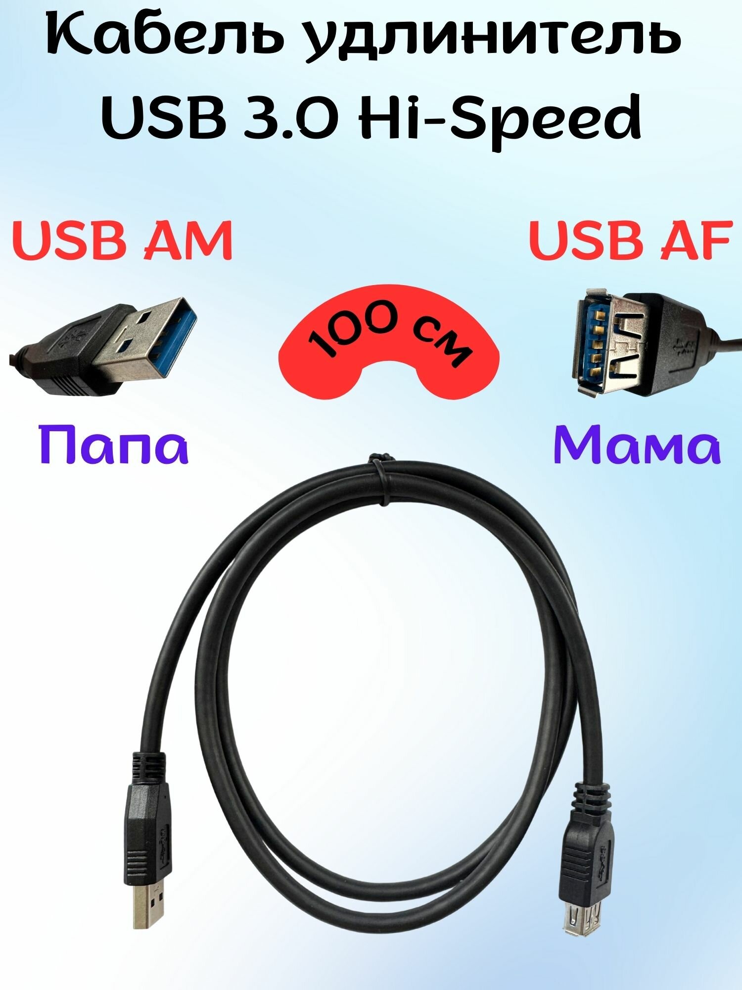 Отзывы на Удлинитель кабеля USB 3.0, AM/AF, папа-мама, длина 1 м, чёрный