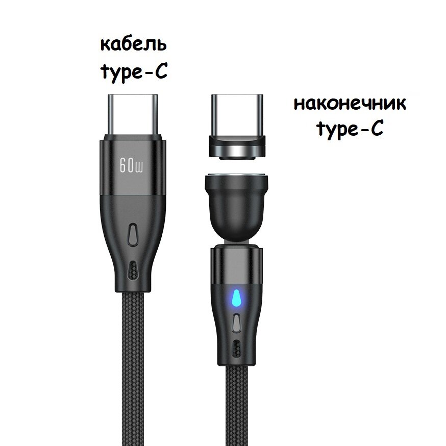 10 цен на Магнитный провод/кабель для зарядки,7pin, вход Type-C 60W, с вращением на 360 и сгибом на 180 градусов / коннектор USB Type-C / 2м / черный