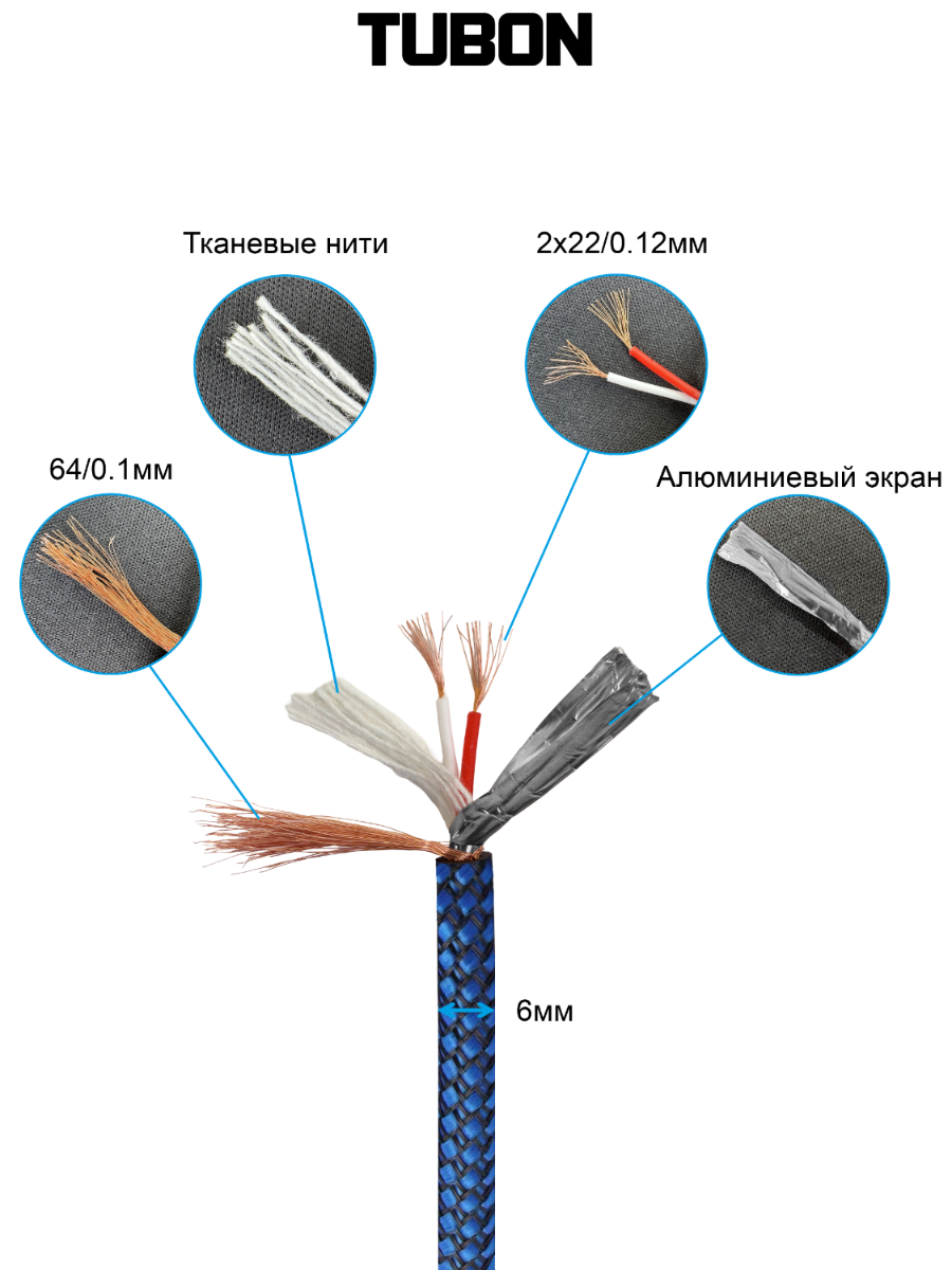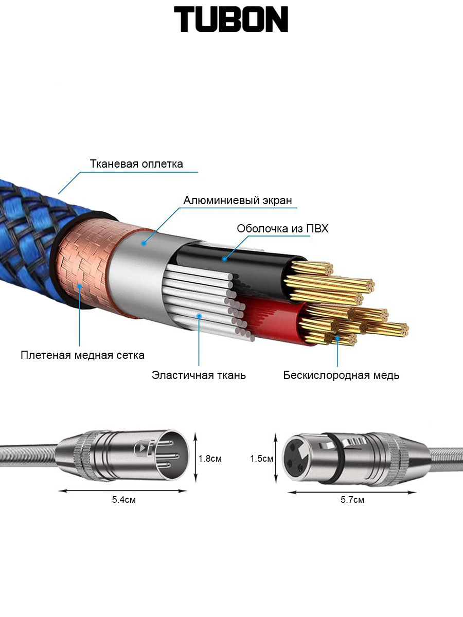 Отзывы на Кабель TUBON Микрофонный межблочный XLR (M) Male - XLR (F) Female OD6.0 Нейлоновая оплетка X003 10м