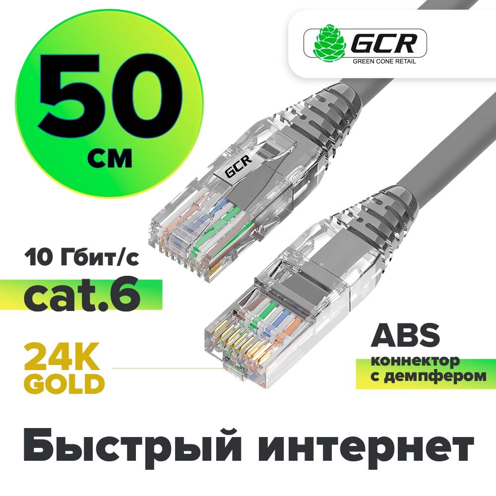 LAN кабель UTP cat 6 для подключения интернета 10 Гбит/с RJ45 (GCR-L301) серый 0.5м информация: