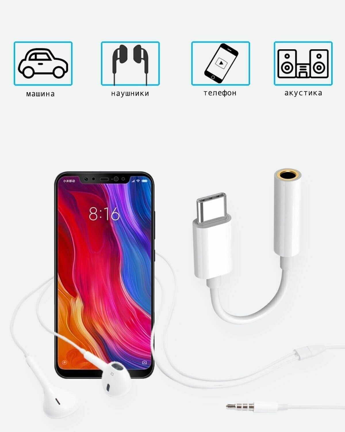 10 цен на Переходник AUX Type-C на аудио разъем Jack 3.5мм, Xiaomi, оригинал, белый