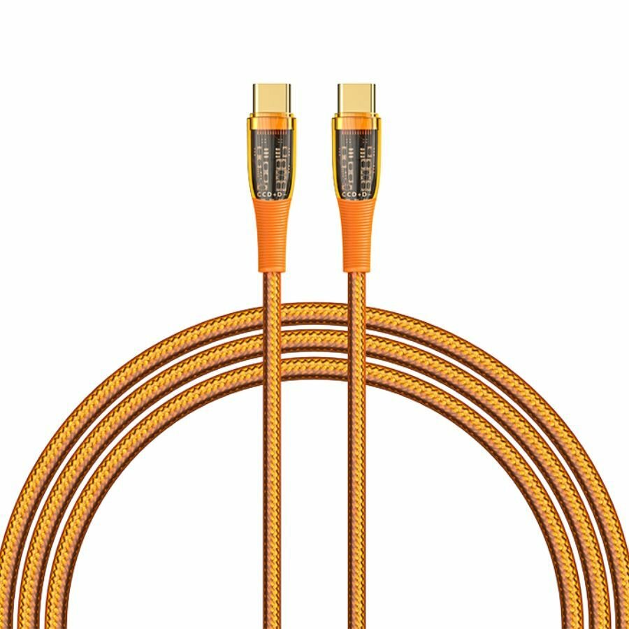 Кабель для быстрой зарядки и передачи данных Recci Amber Gold, Type-C to Type-C, PD100W, 150 см, Оранжевый информация: