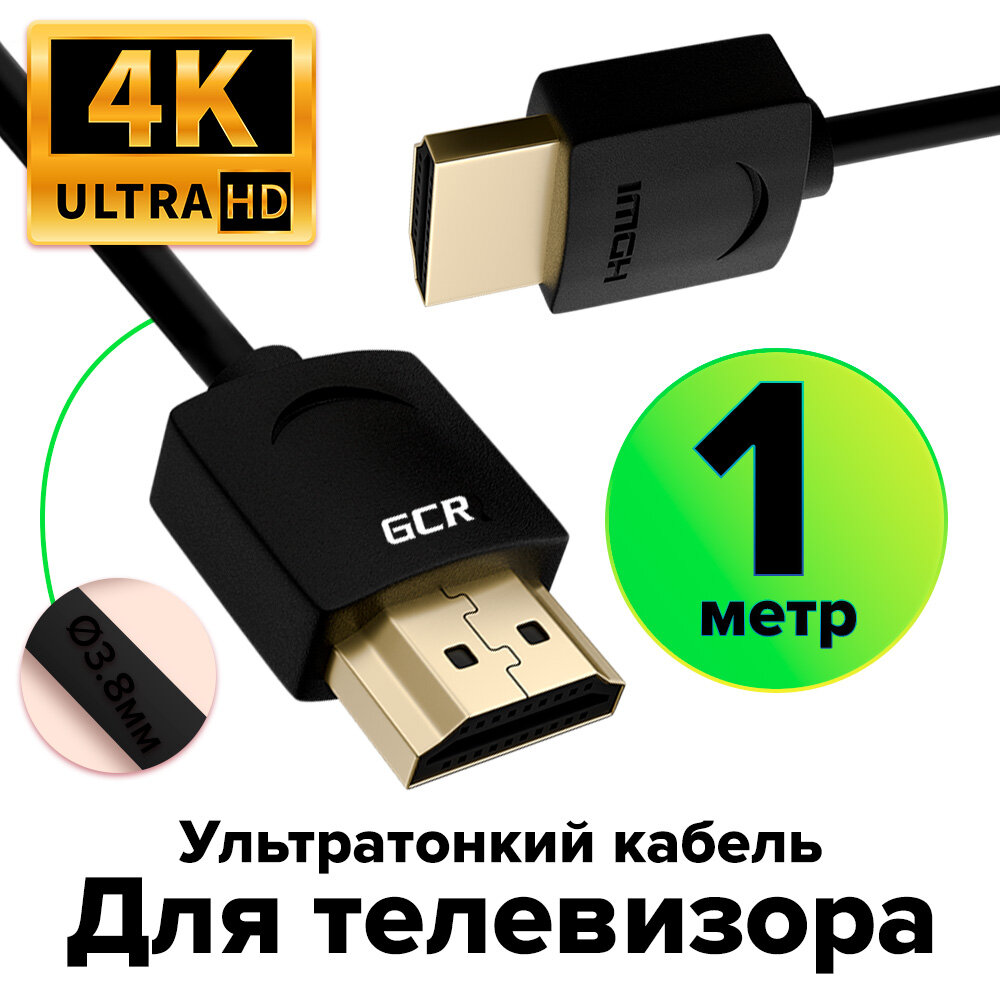 10 цен на Кабель 1м GCR HDMI 2.0 Ultra HD 4K 60Hz 3D 18.0 Гбит/с 24K GOLD черный для телевизора