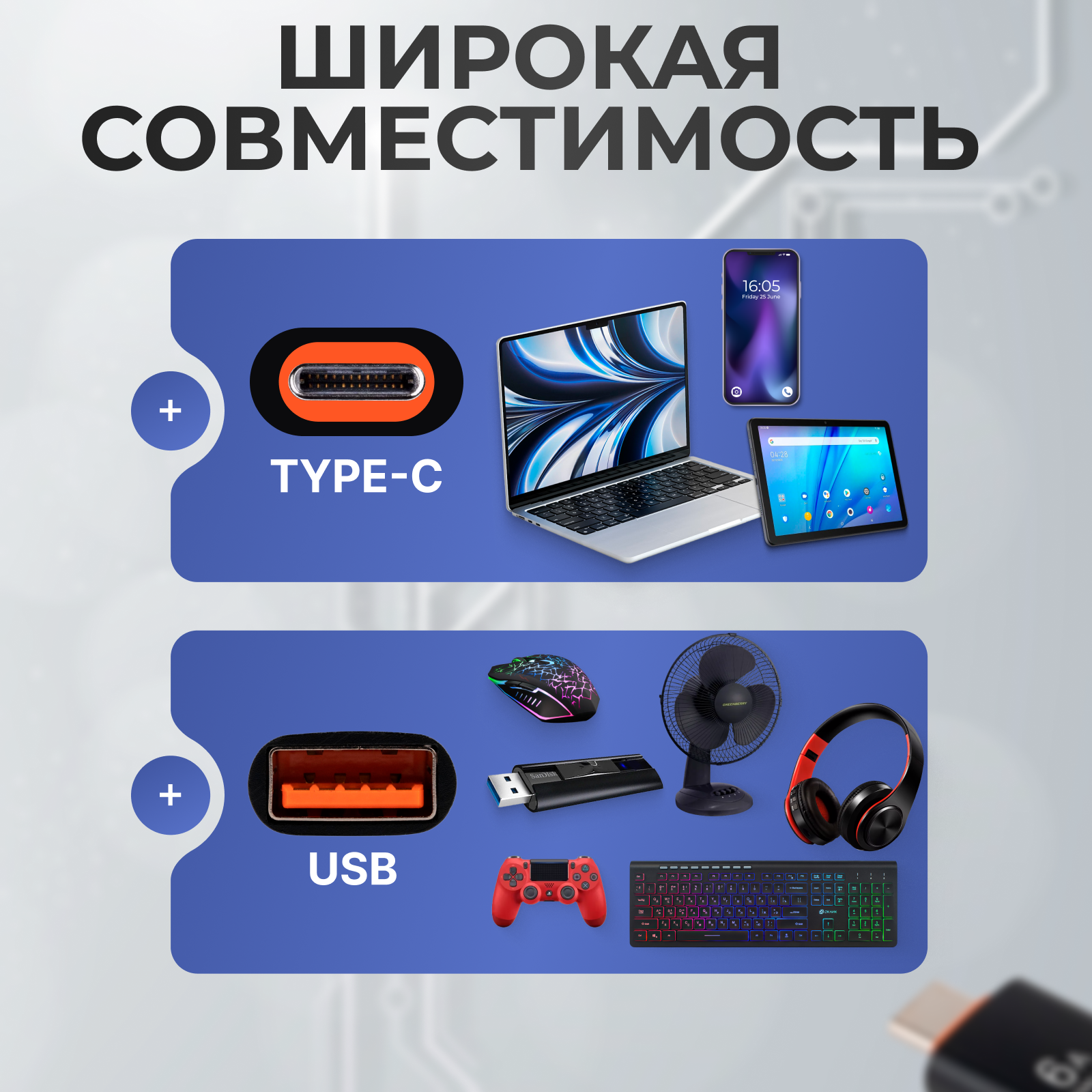 - Компьютерные кабели, разъемы, переходники