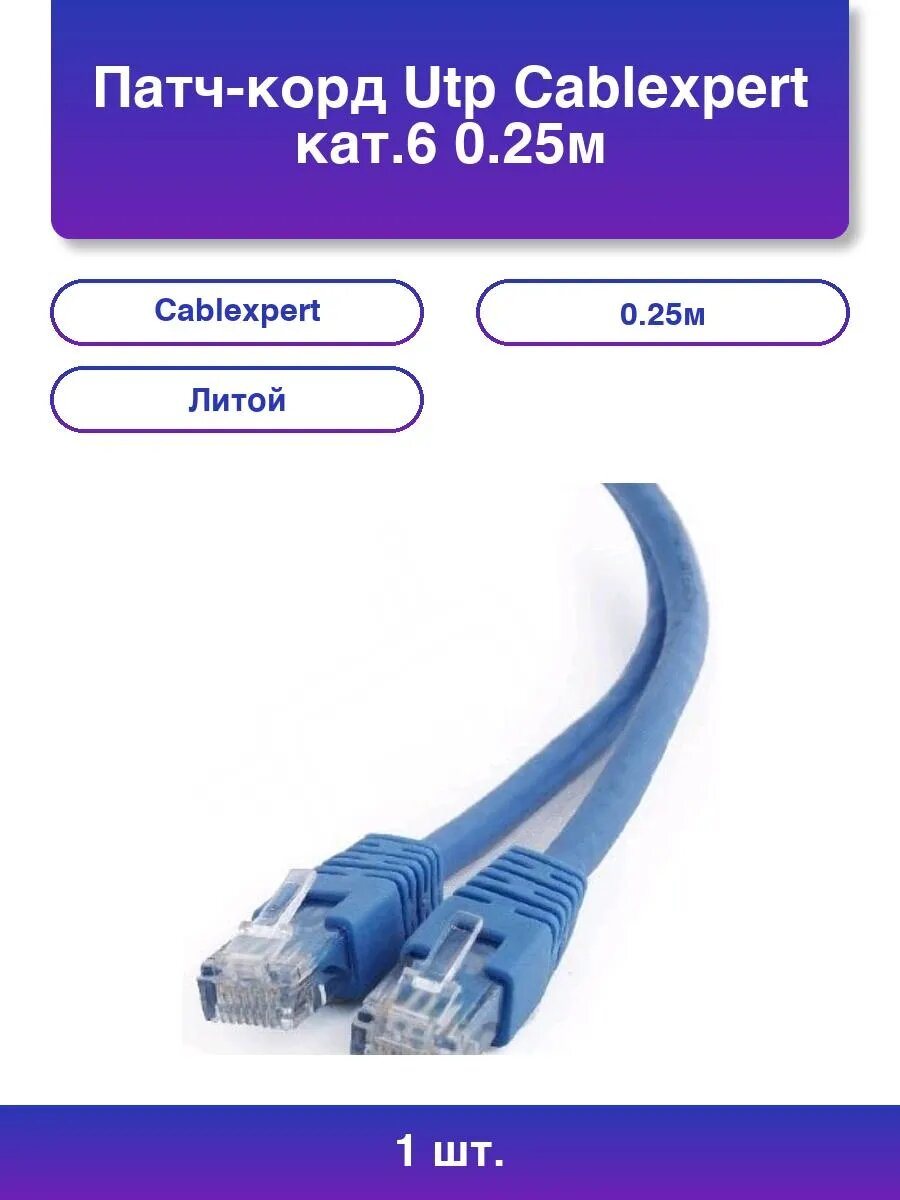 1шт. Патч-корд Utp кат.6 0.25м литой многожильный синий информация: