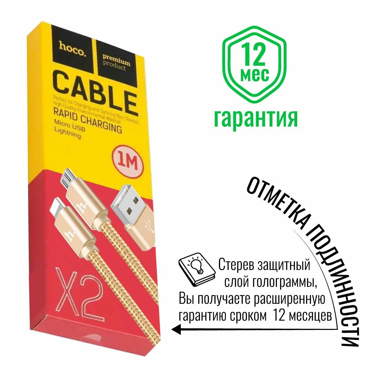 Кабель для iPhone / Андройд, 2 в 1, быстрая зарядка, 1 метр, нейлоновый, передача данных / micro USB провод для iPad airPods / Hoco. X2 информация: