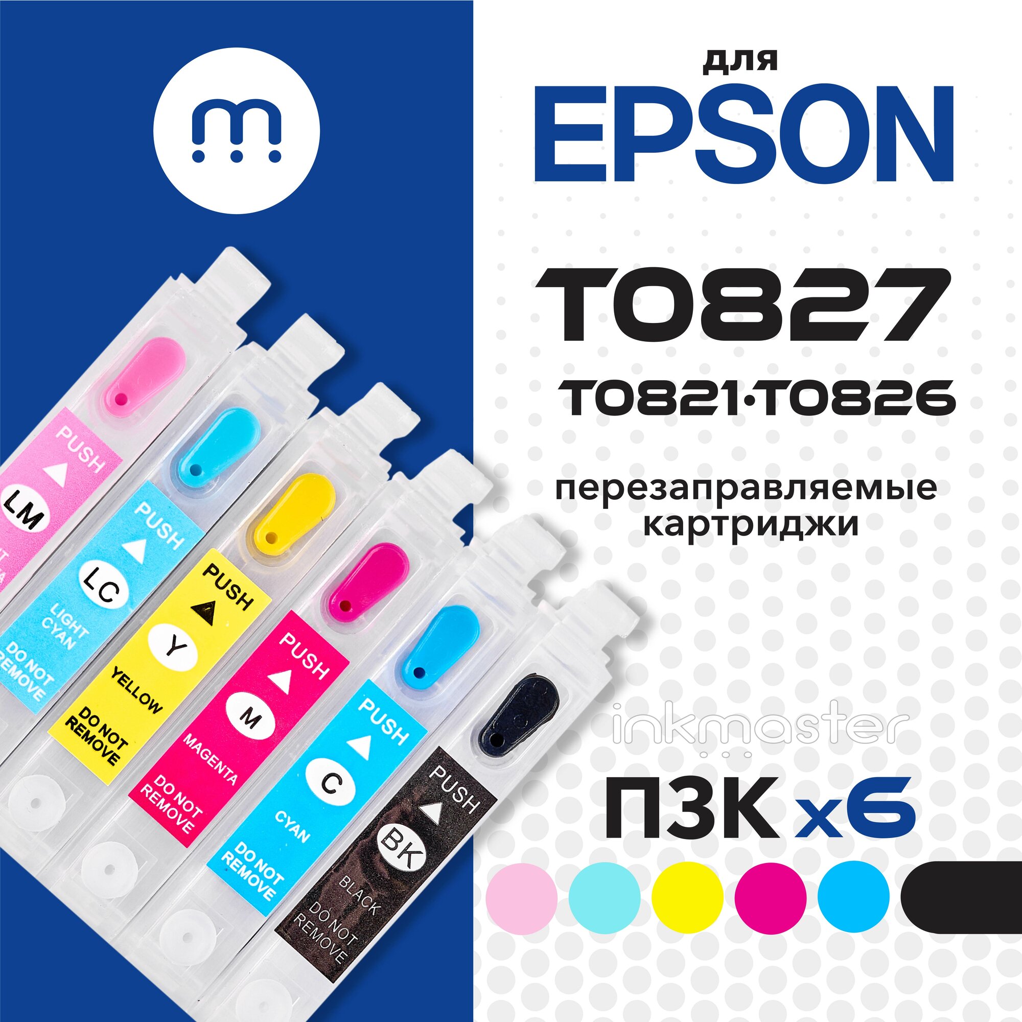 Перезаправляемые картриджи T0821-T0826 для Epson Stylus Photo T50 T59 и др (БЕЗ ЧЕРНИЛ) 6 цветов с авто-чипами Inkmaster