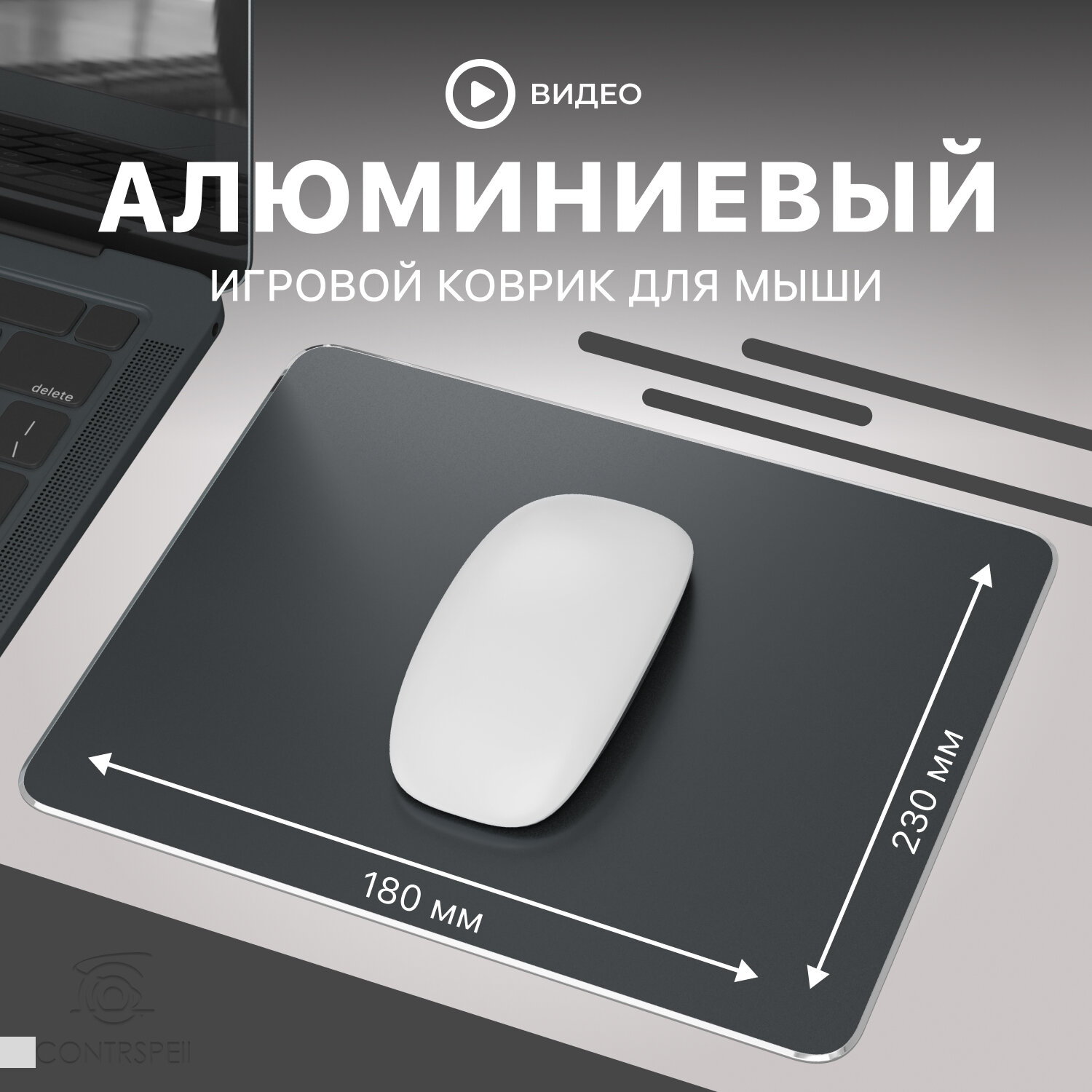 Коврик для мышки алюминиевый, твердый, матовый, темно-серый, 23 см x 18 см x 2 мм 661 ₽