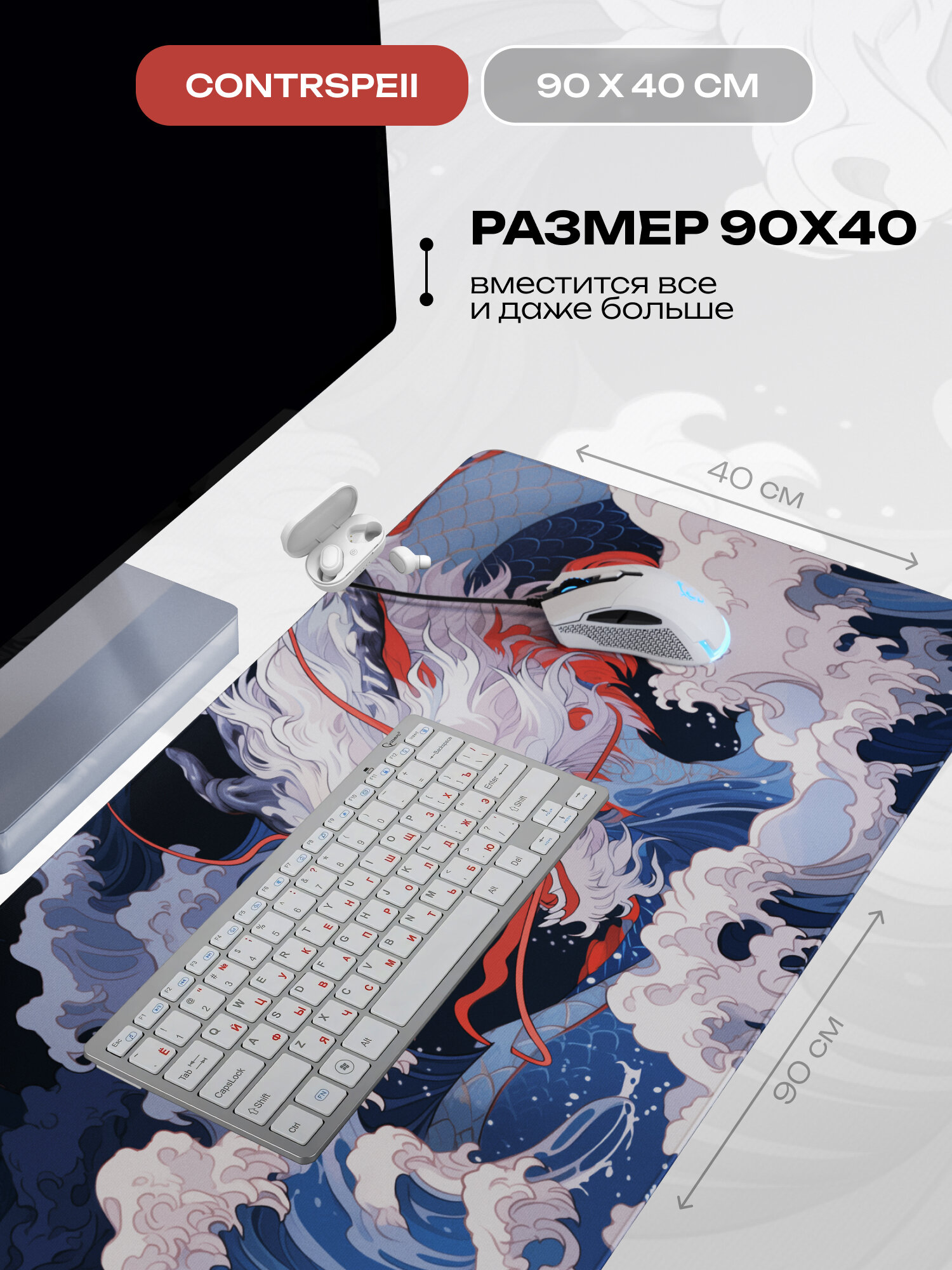 Игровой коврик CONTRSPEll, для ПК, большой, 90 см x 40 см, Дракон в Японском стиле информация:
