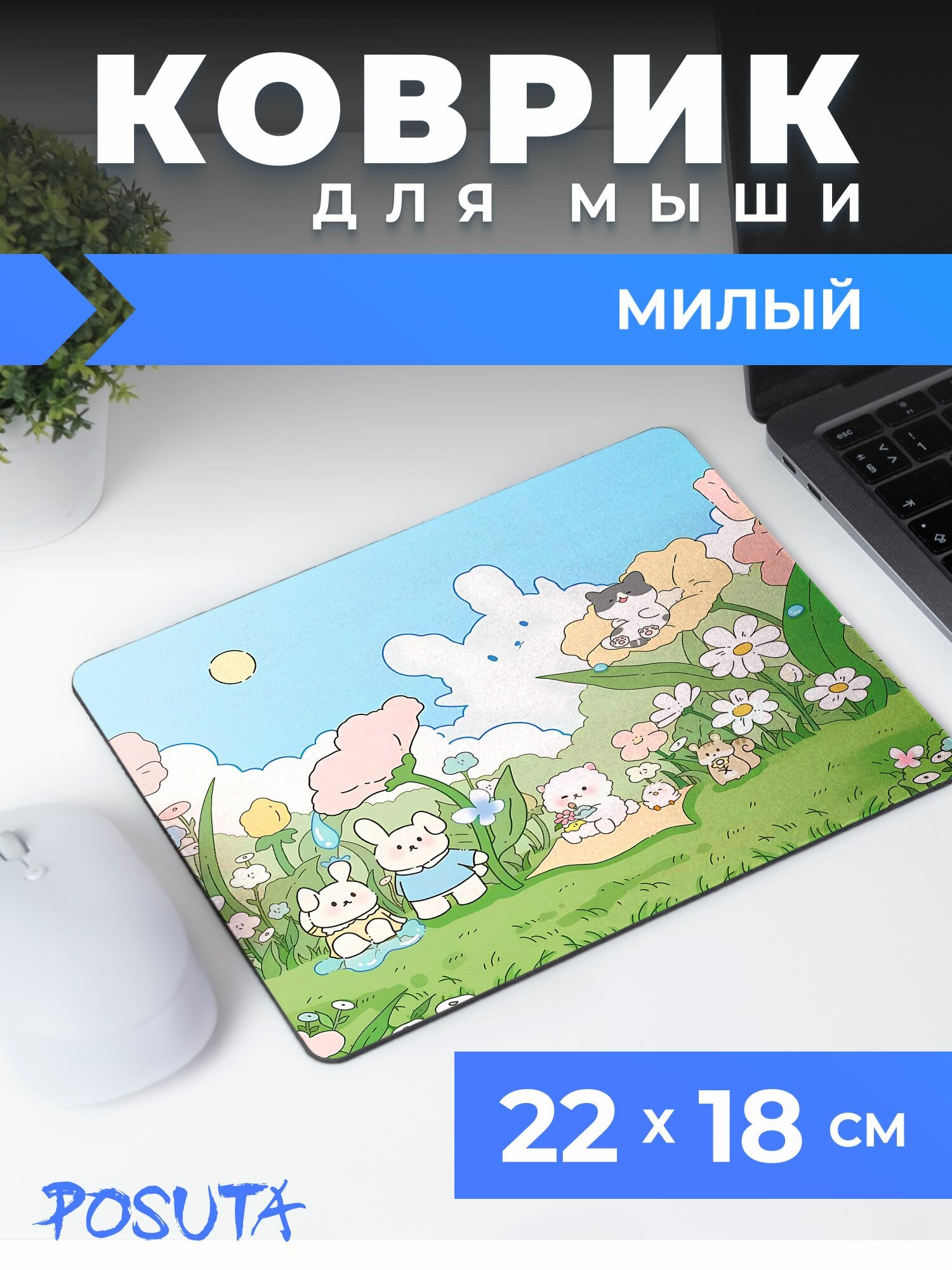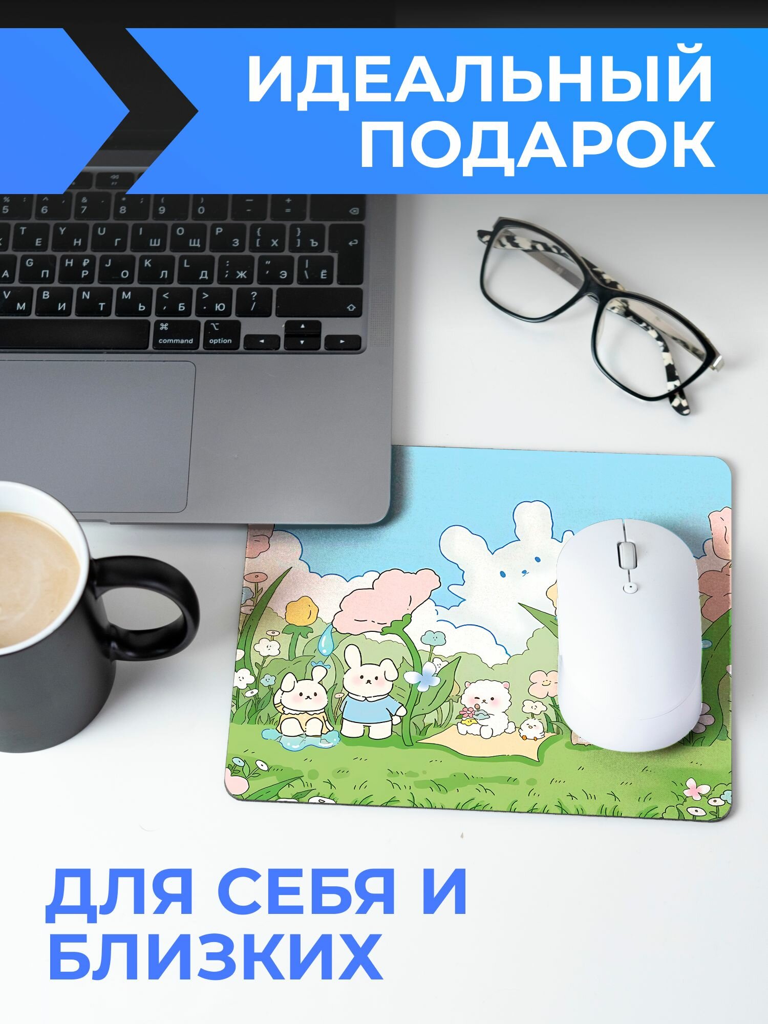 Игровой милый коврик для мышки Зайчики котики информация: