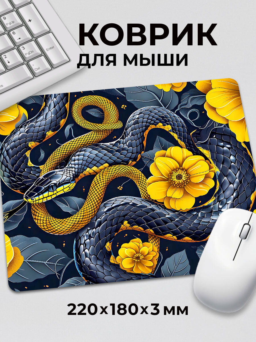 10 цен на Коврик для мышки Змея Черная Золотые Цветы Новогодняя