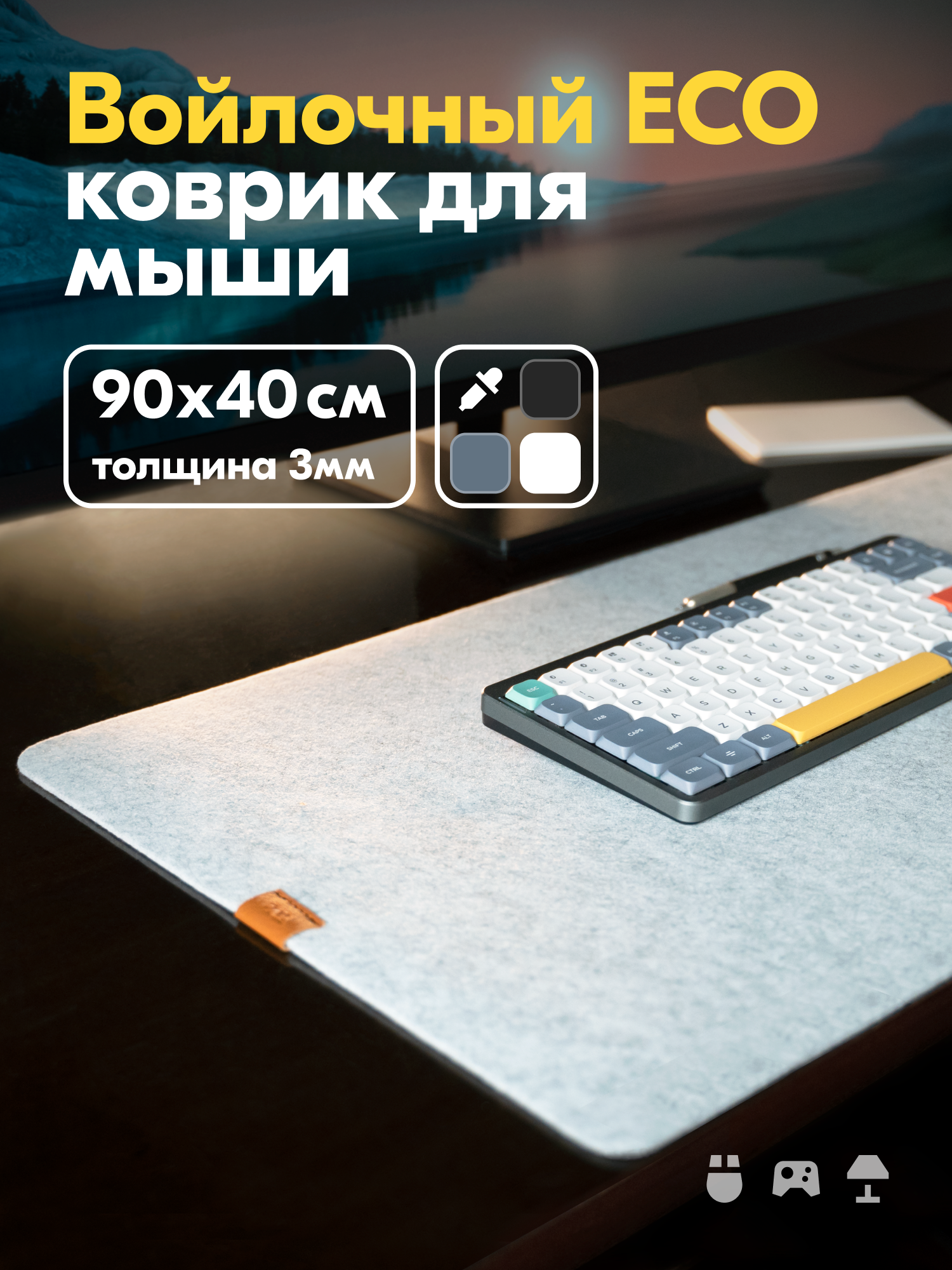 Коврик для мышки 900х400 большой игровой, для клавиатуры и мыши, на стол письменный, белый 90х40, войлочный информация: