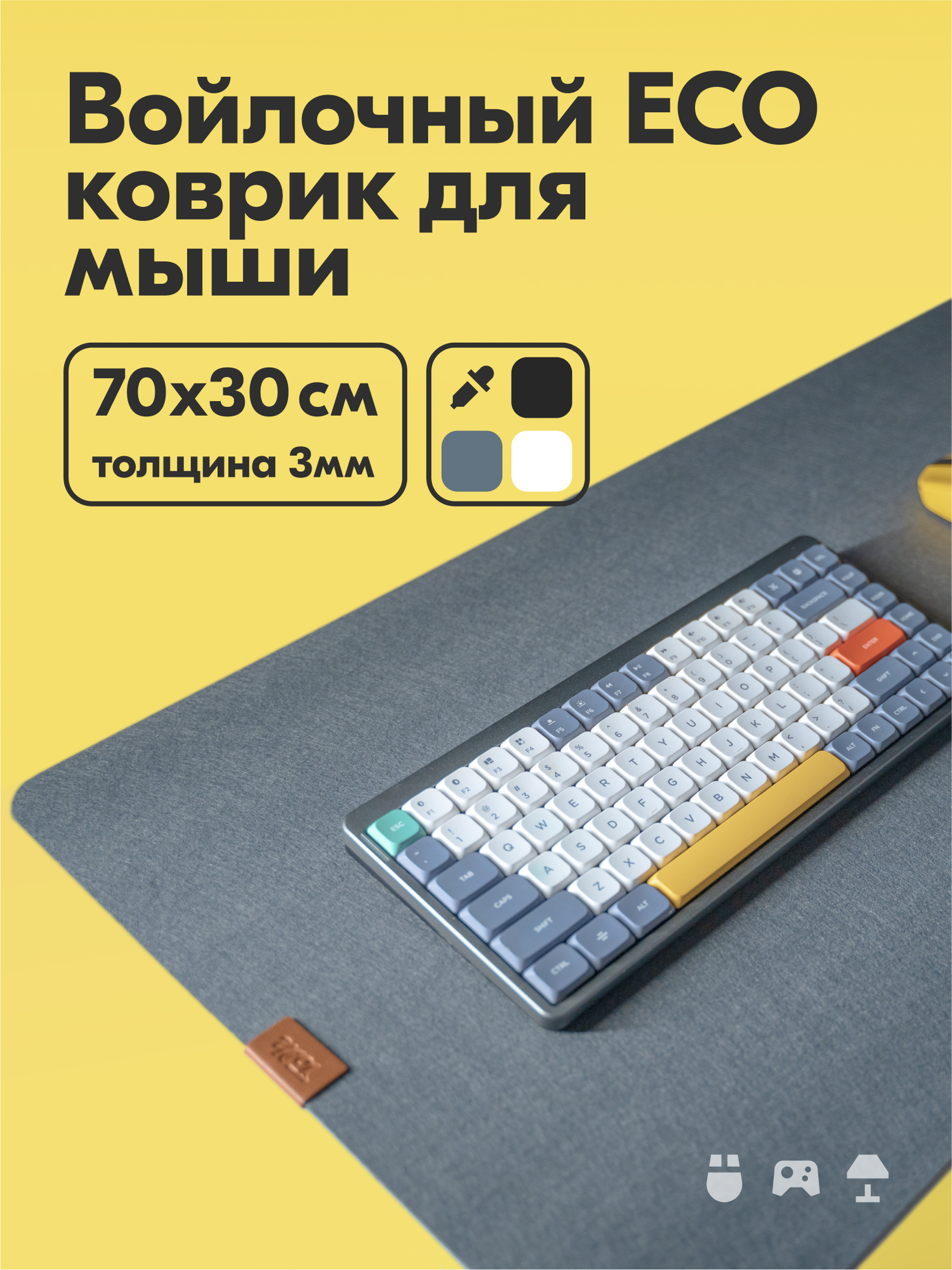 Коврик для мышки 700х300 серый большой игровой, для клавиатуры и мыши на стол письменный, войлочный информация: