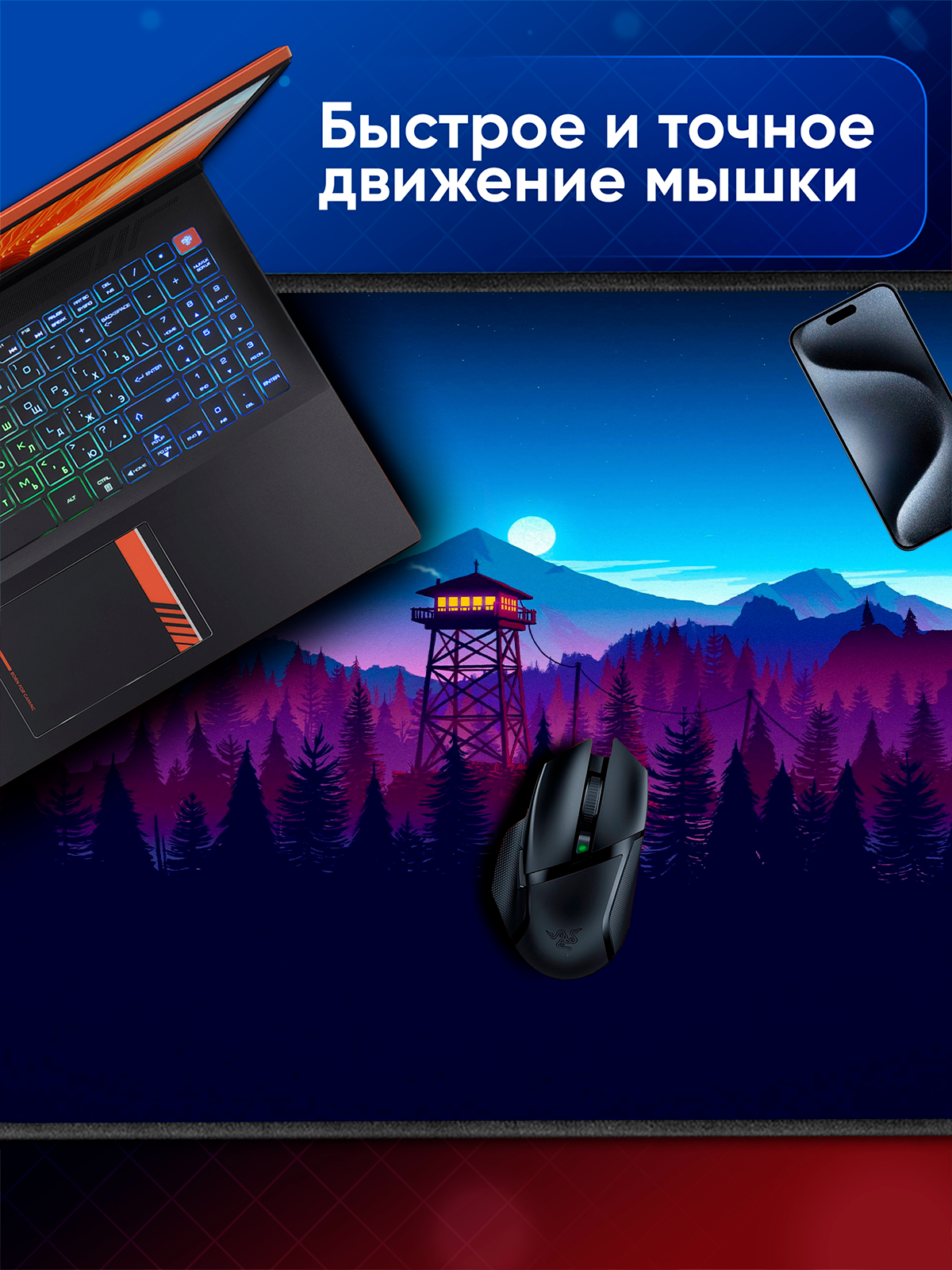 Отзывы на Большой игровой коврик для мышки с принтом, 90х40 см, Дозорная вышка голубой. Компьютерный ковер под клавиатуру и мышь на весь стол.