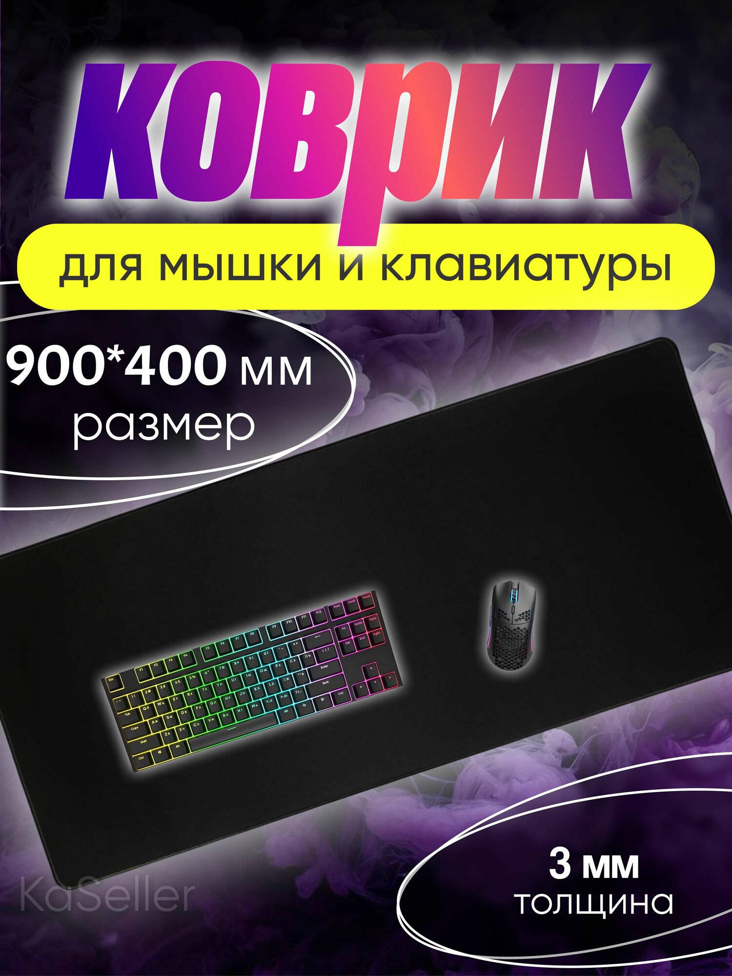 Коврик для клавиатуры и мышки большой игровой черный 900х400х3мм информация: