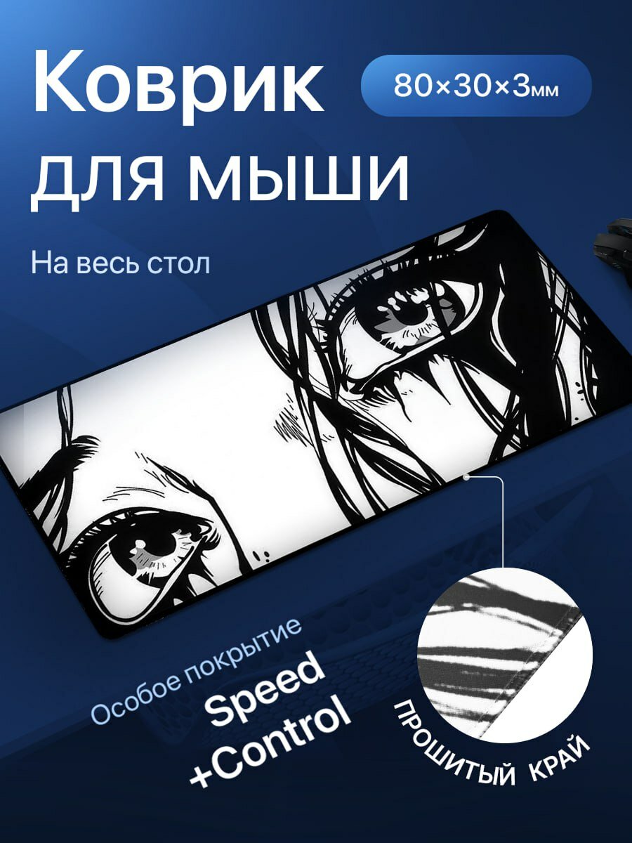 10 цен на Игровой коврик для мыши большой, глазки аниме. Размер 800х300x3