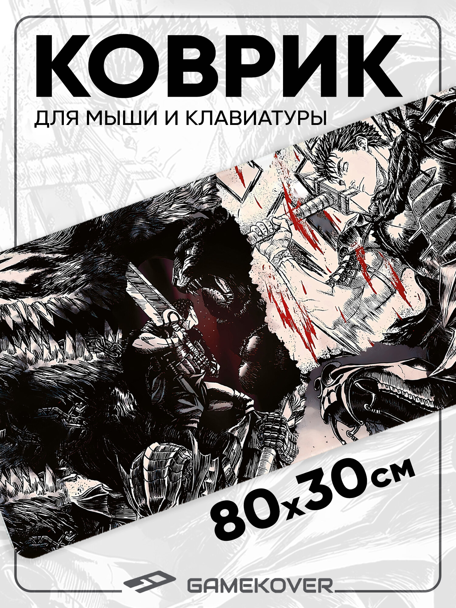 Коврик для мыши большой игровой 80 на 30 для компьютерного стола Берсерк BERSERK информация: