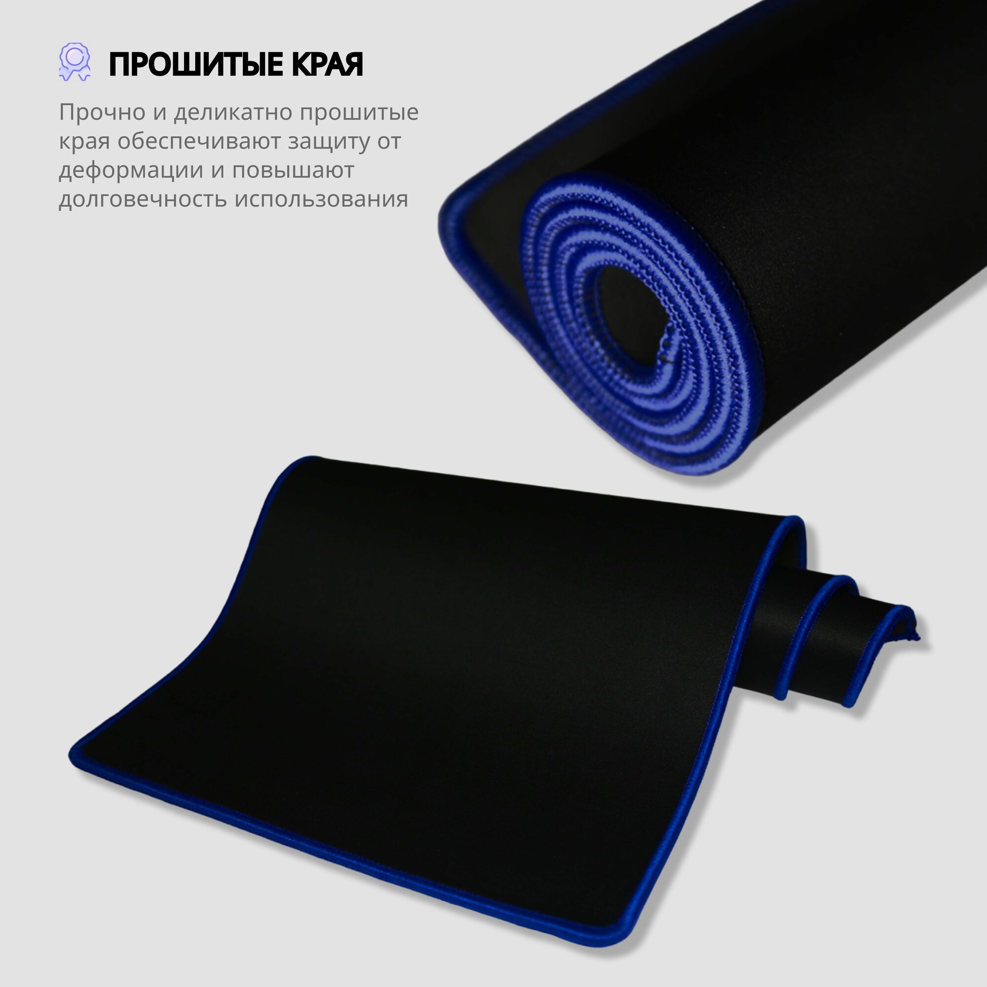 Большой коврик для мыши черный с синими краями 800х300х4 информация: