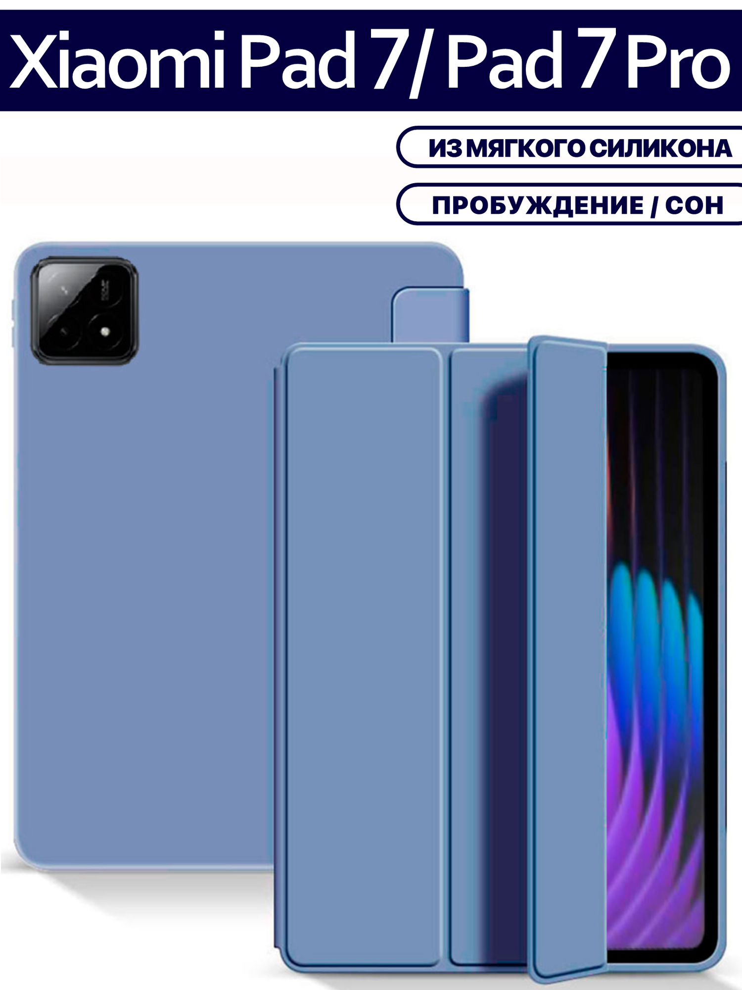 Чехол для планшета Xiaomi Pad 7 / Pad 7 Pro (11.2 дюйма), отделение для стилуса, темно-синий 950 ₽