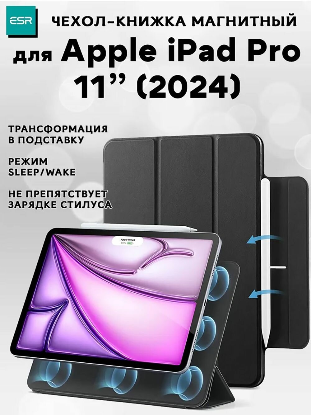 Чехол книжка ESR Rebound Magnetic Case с застежкой для Apple iPad Pro 11 (2024), черный информация: