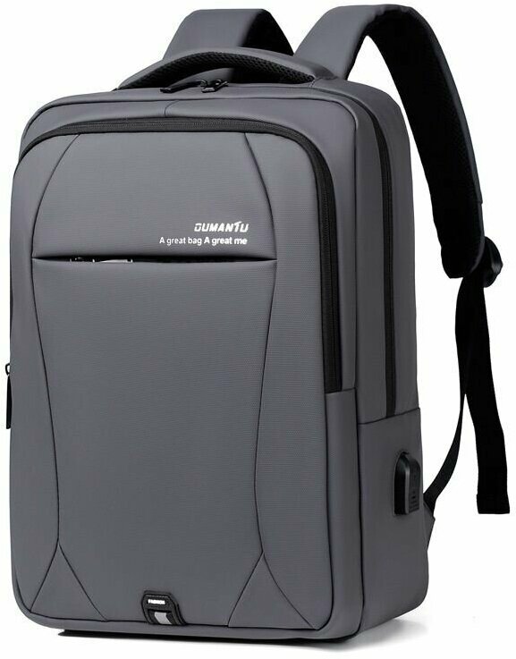 Рюкзак для ноутбука 15" с USB-портом, защитой от воды и антивором, серый информация: