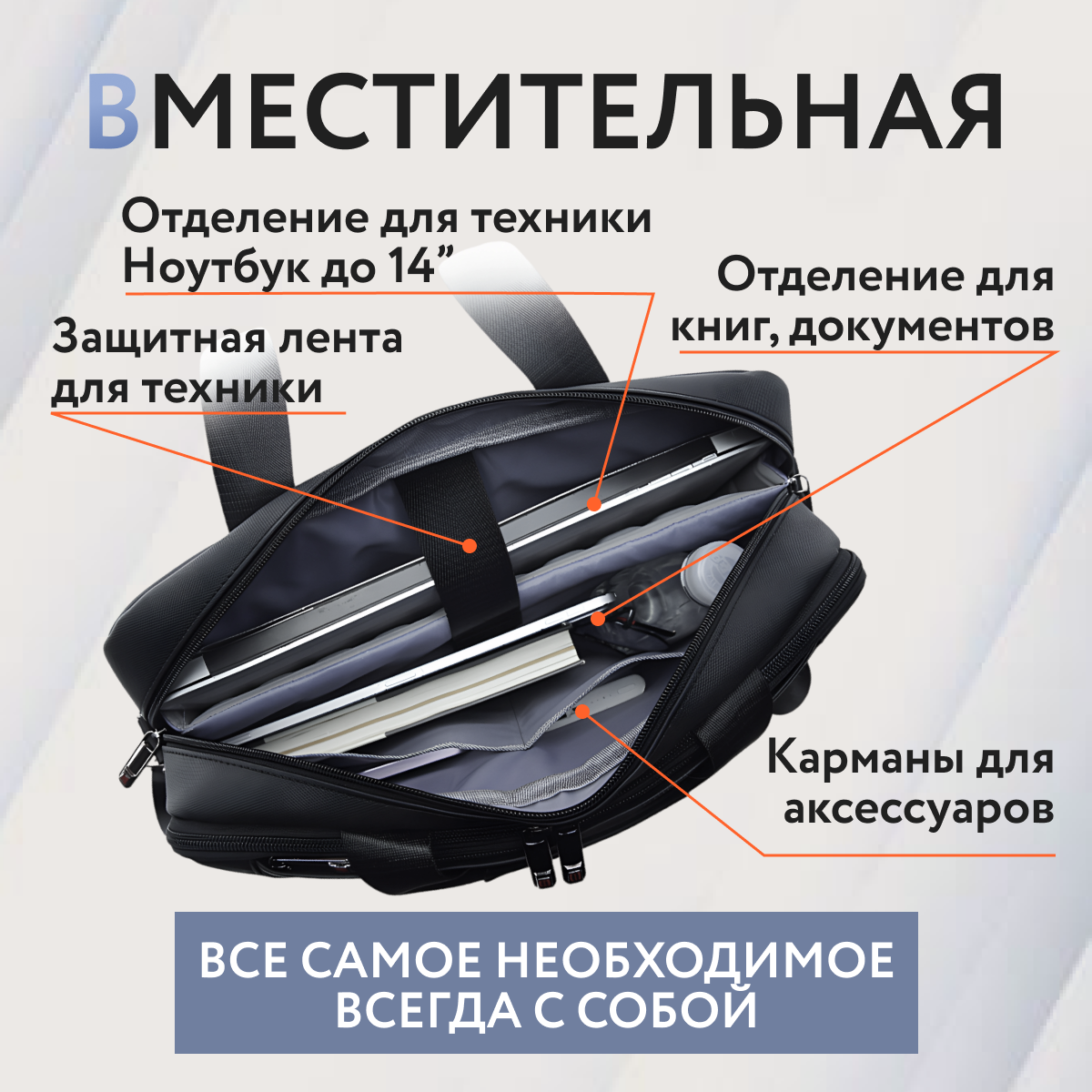 Сумка-портфель Buschnelke, водонепроницаемый, для ноутбука 13", черная информация: