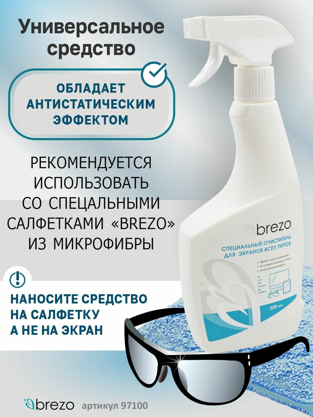Средство для экранов и мониторов BREZO - 500 мл, арт. 97100 информация: