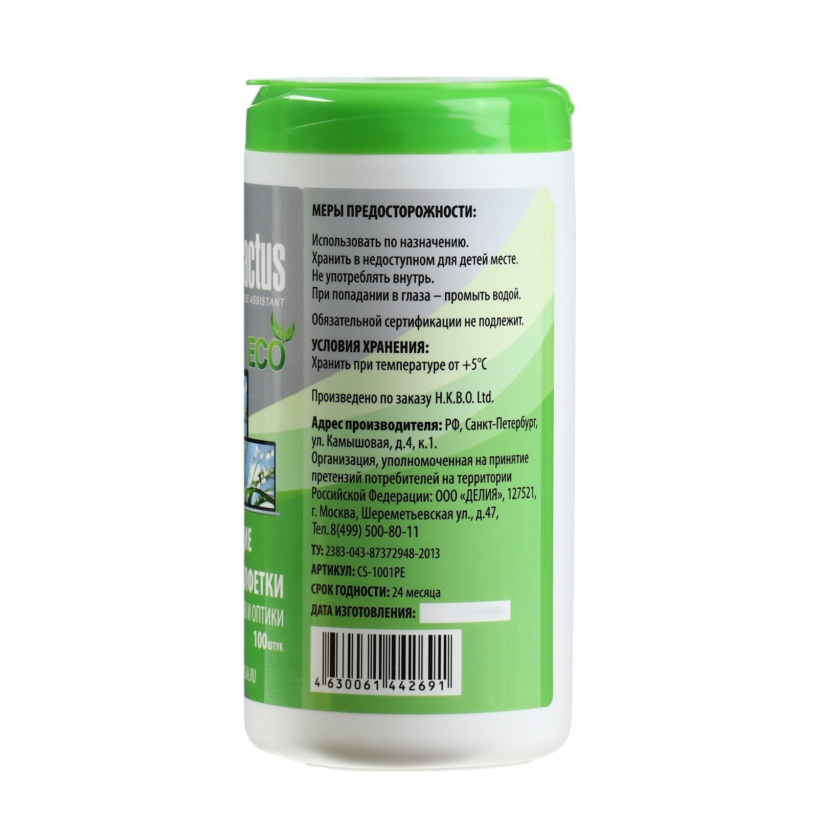 10 цен на Салфетки для экранов и оптики Cactus CS-1001PE, влажные, туба 100шт