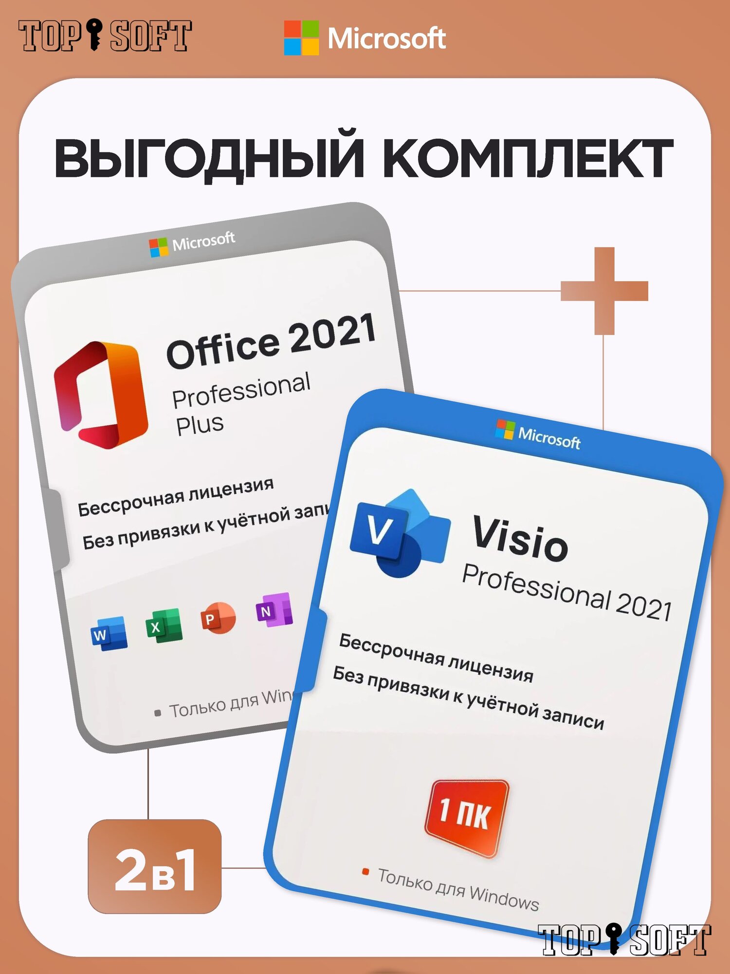 10 цен на Комплект Microsoft Office 2021 Pro Plus + Visio 2021 Pro Ключ активации Microsoft (На 1 ПК, Русский язык, Бессрочная лицензия)