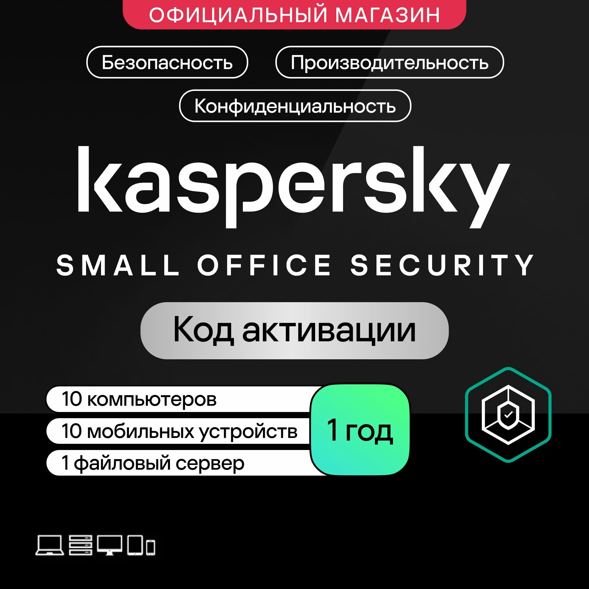 Kaspersky Small Office Security (10 компьютеров, 10 мобильных устройств, 1 файловый сервер, 1 год) информация: