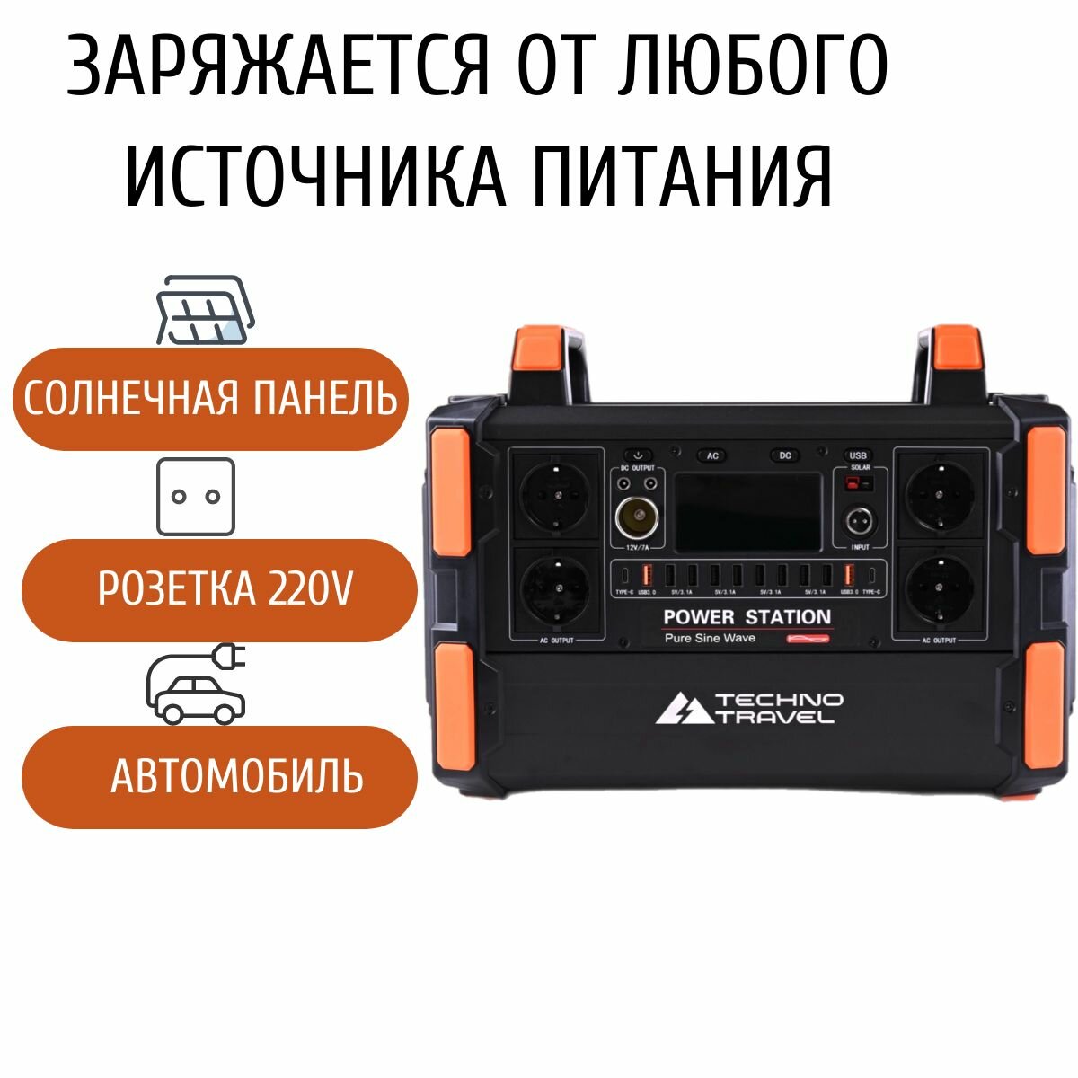 Портативная электростанция Techno Travel К5, 1200W. Power bank 328300 мАч с розетками 220В 82 300 ₽