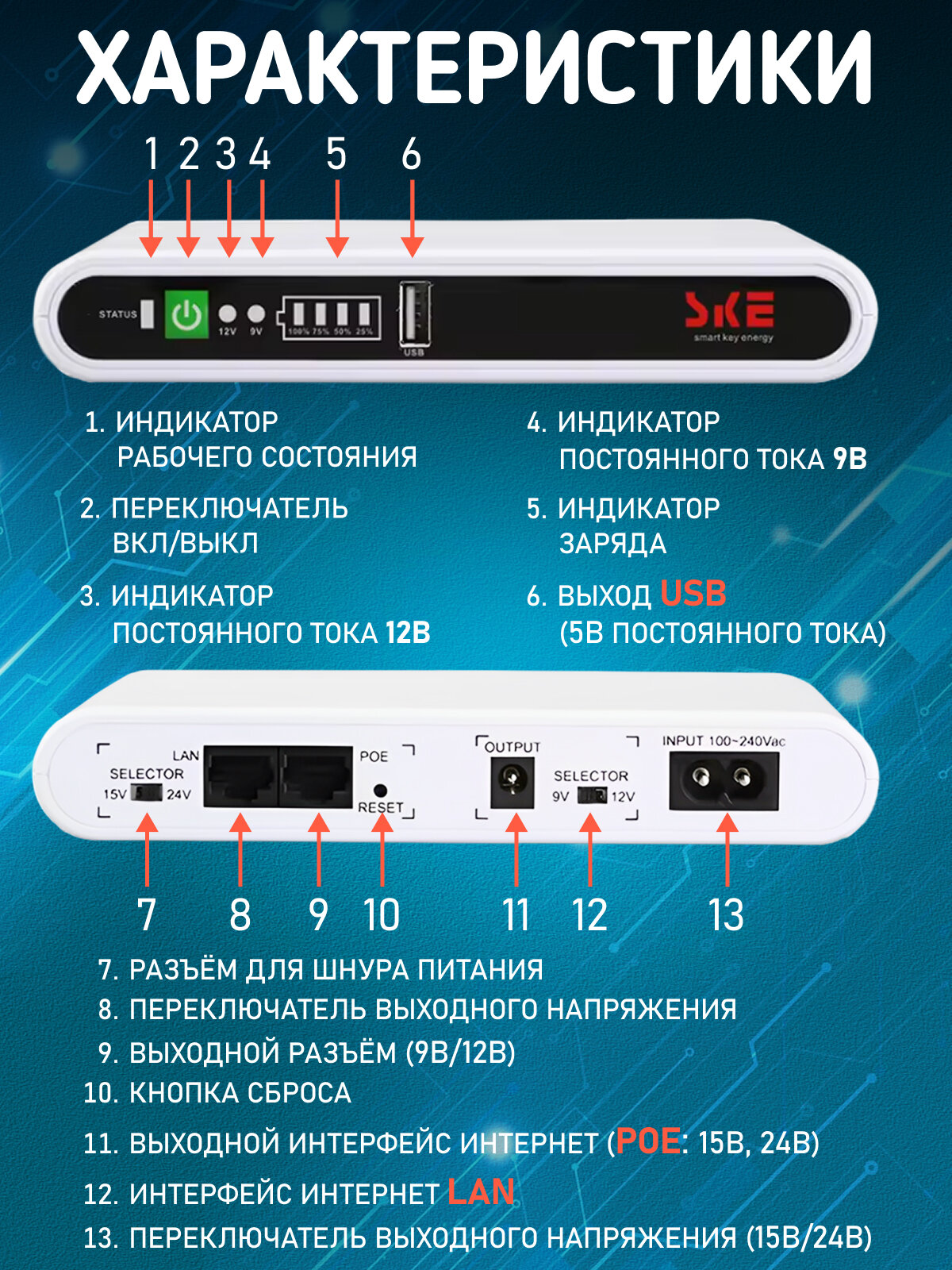 Источник бесперебойного питания мини для роутера 8800 mah для дома портативный с защитой от перепадов информация:
