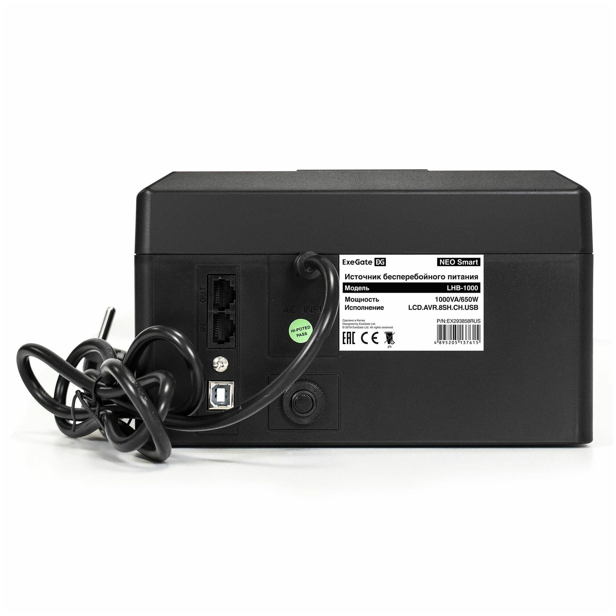 Источник бесперебойного питания 1000va/650w 8xschuko lcd neo smart ex293858rus exegate информация: