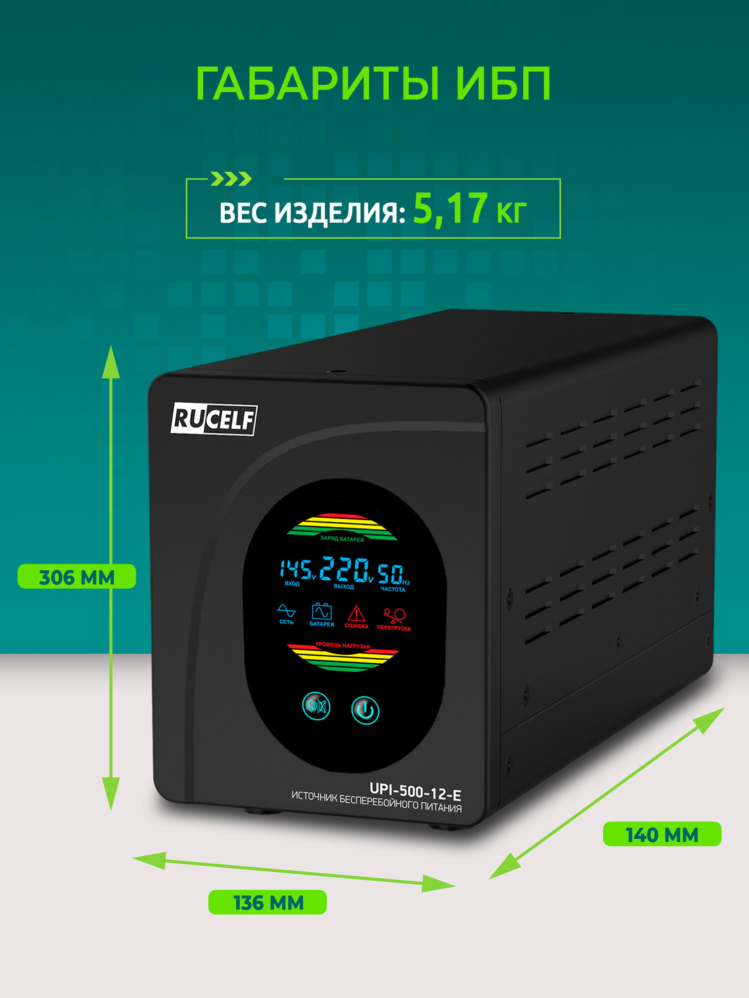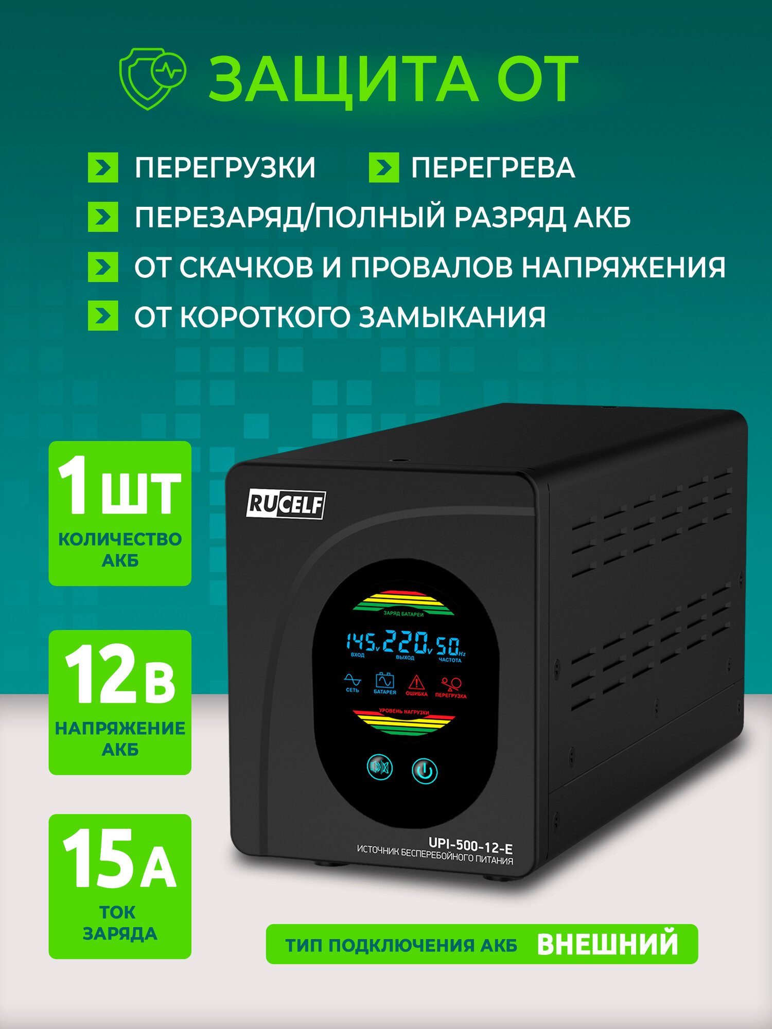 10 цен на Источник бесперебойного питания RUCELF UPI-500-12-E 500 ВА/300 Вт для газовых котлов и циркуляционных насосов (без АКБ)