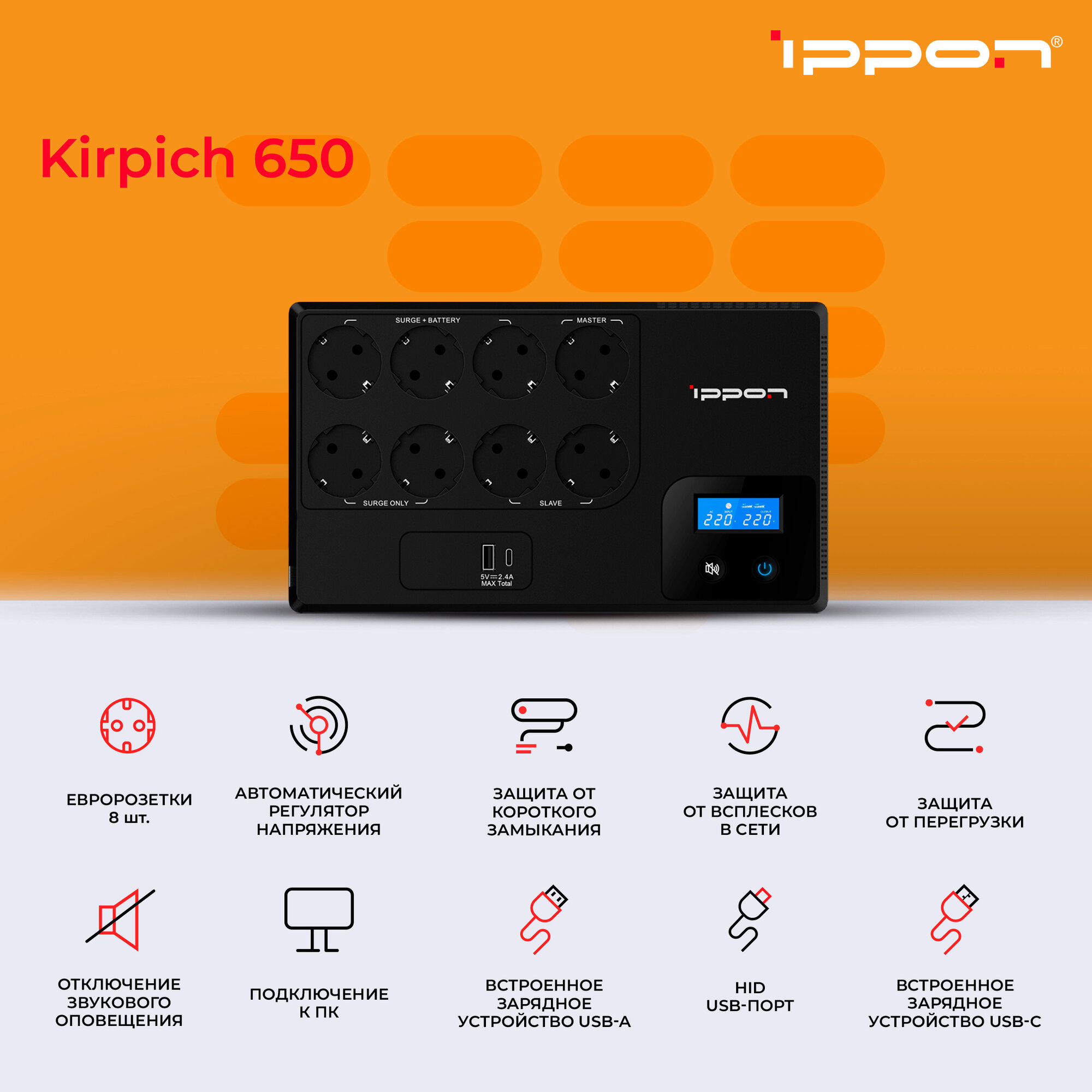 Отзывы на Источник бесперебойного питания Ippon Kirpich 650 360Вт 650ВА черный