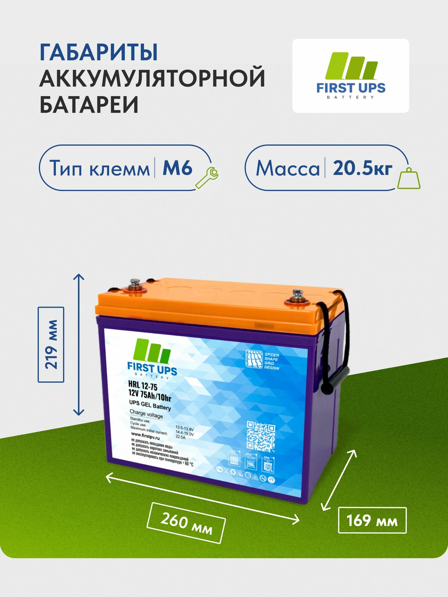 Аккумулятор FIRST UPS HRL 12-75, 12 В, 75 Ач, 260x219x169 мм, 1 шт. информация: